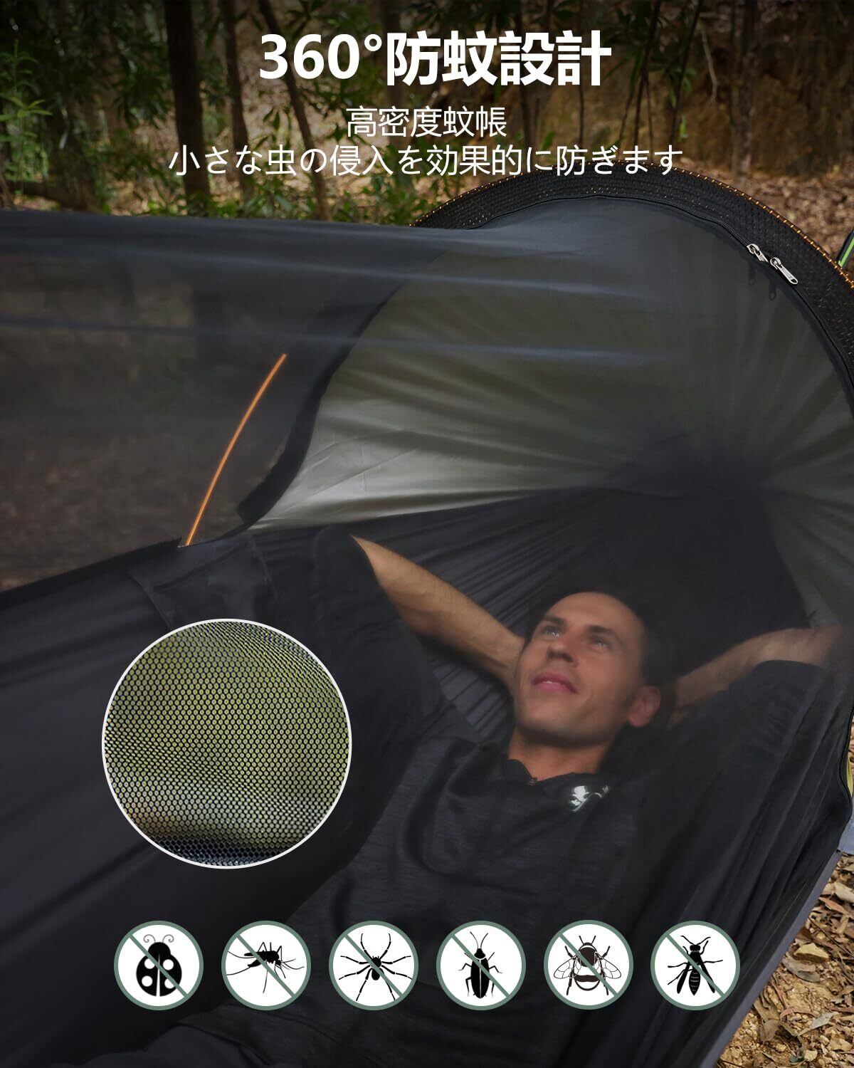 ハンモック テント 蚊帳付き 日焼け防止 3in1 多機能吊り床 270*140CM 通気 ポータブル 露営 空間広い アウトドア 軽量 便利 取付簡単 200kg荷重 収納袋付き アウトドア旅行 ハイキング 野営 公園
