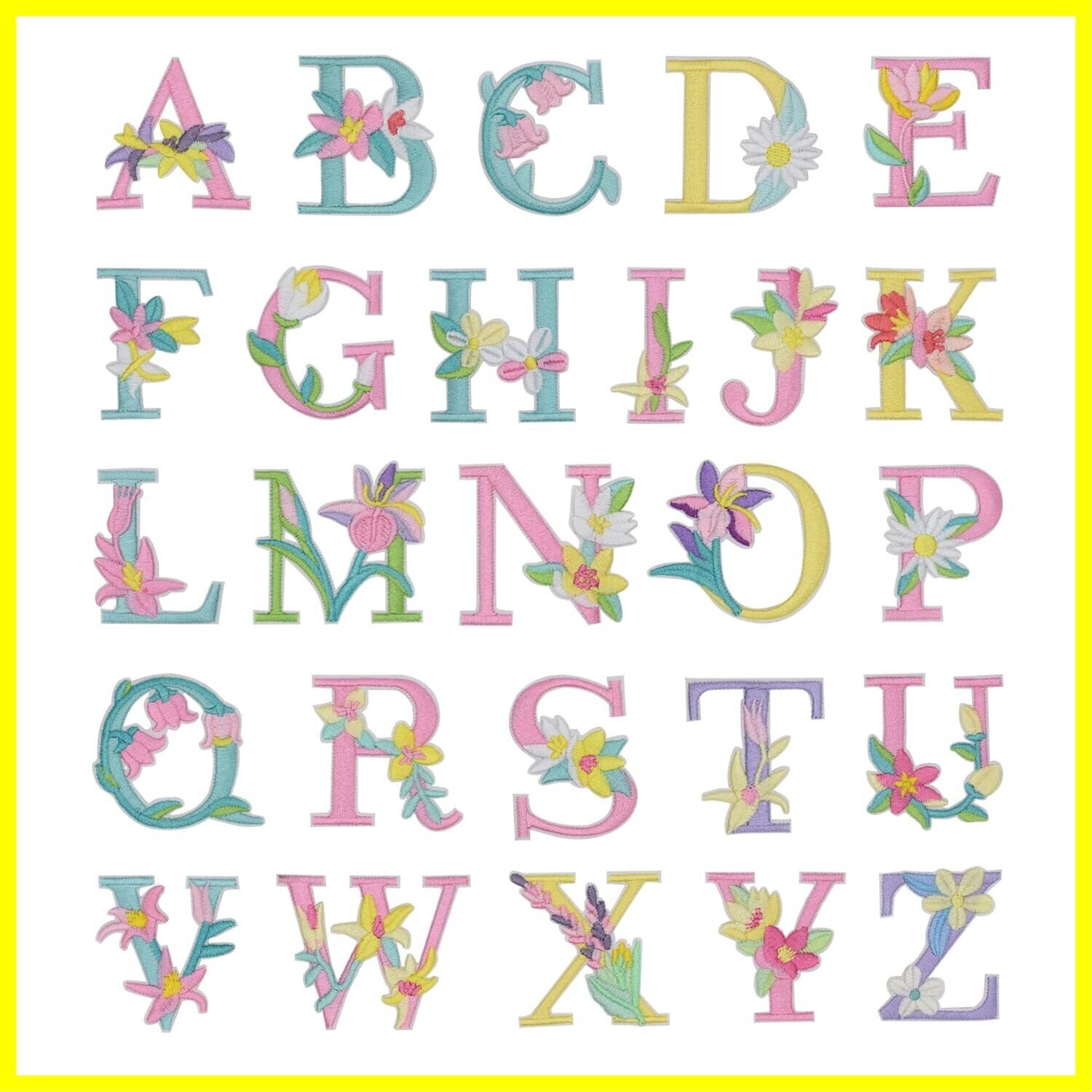 26枚セット 刺繍ワッペン アルファベットとフラワー 花