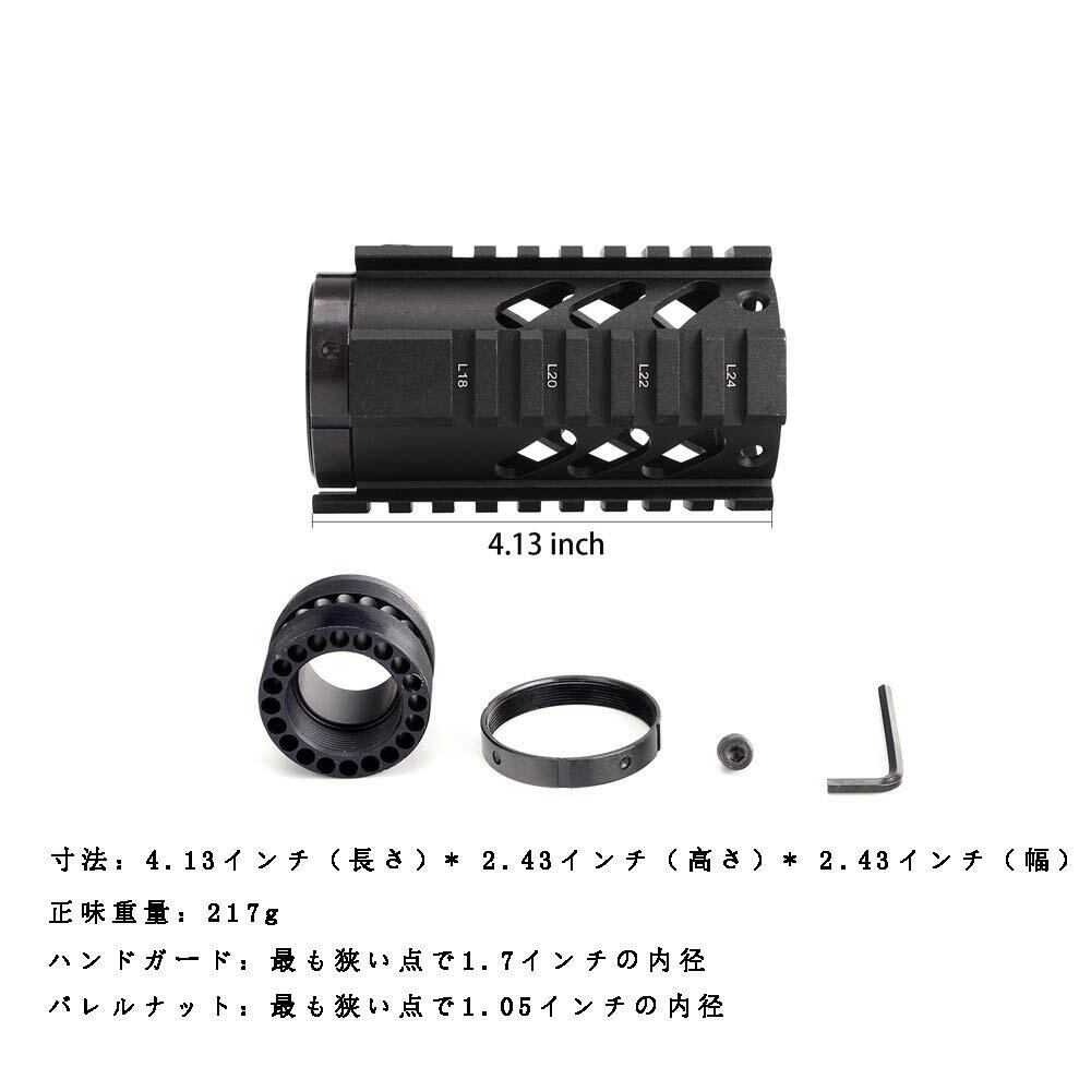 付属品:フリーフロートレールハンドガード、アルミバレルナット、キャッスルナット、回転防止セ ットスクリュー、六角レンチ。