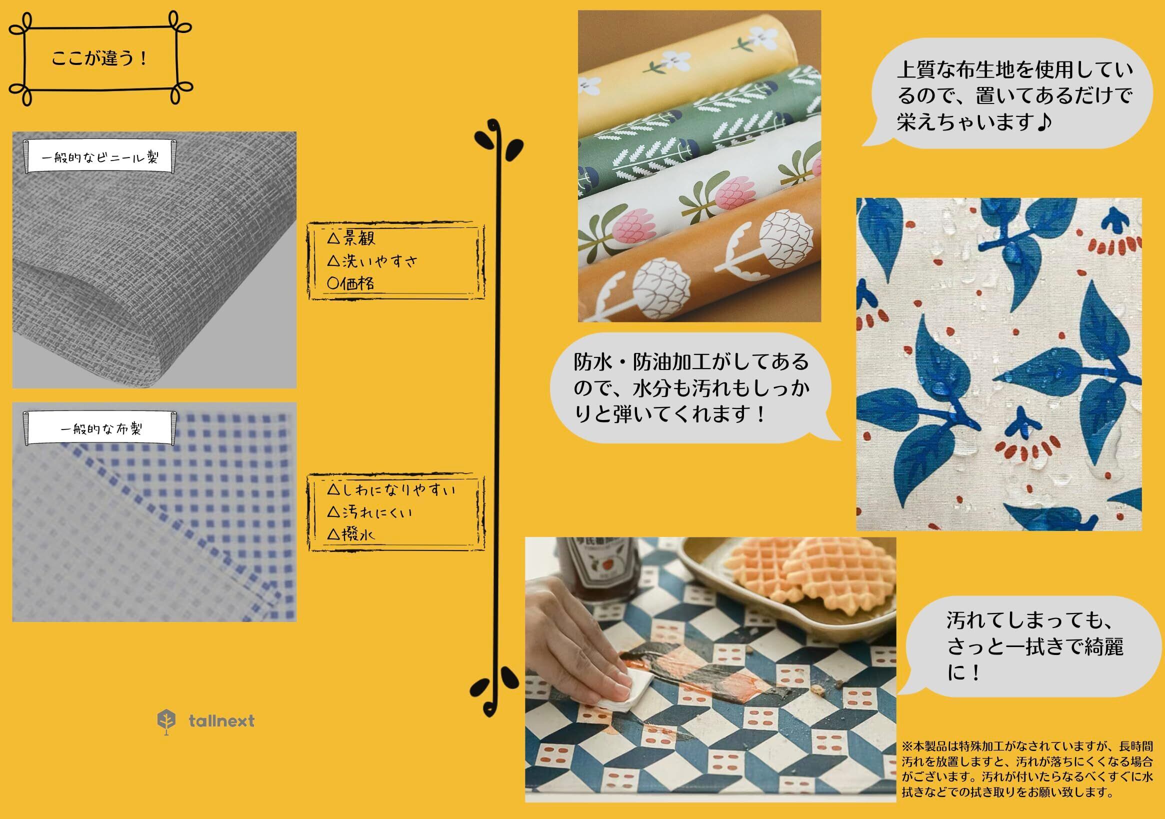 プラスチック製のランチョンマットに比べて、テーブルに馴染んで、お食事にさらなる彩りを添えてくれます