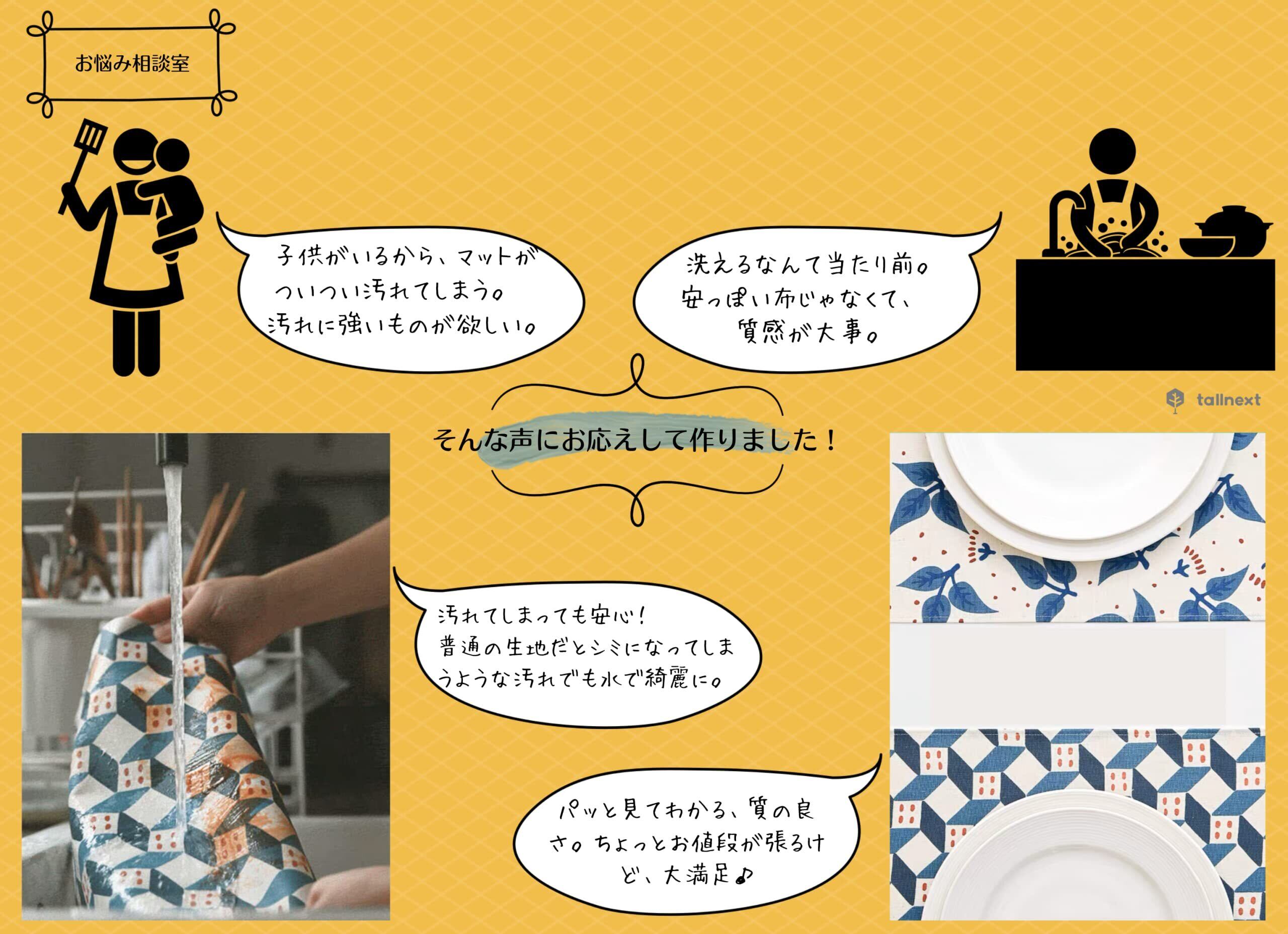 ランチョンマット製造時に使用している生地は除菌処理済です。安心してお使いいただけます。
