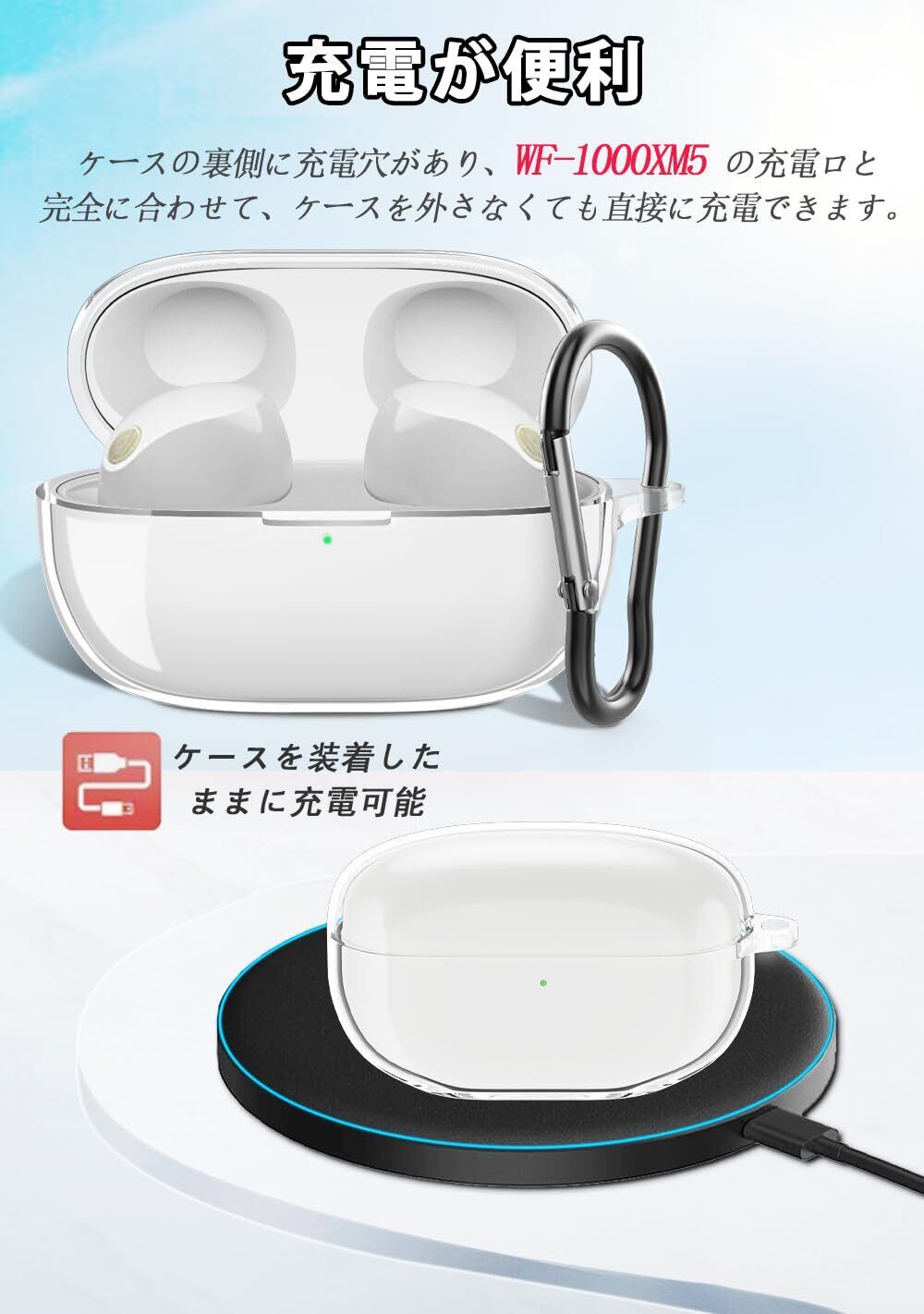 Vikisda WF-1000XM5 用 ケース クリア【2023年9月発売】WF-1000XM5 専用 保護カバー TPU素材 分離式 LEDライトが見える 装着充電可能 全面保護 落下防止 キズ防止 耐衝撃 防塵 軽量 ソニーイヤホン 1000XM5 対応 クリアケース カラビナ付き (クリア)