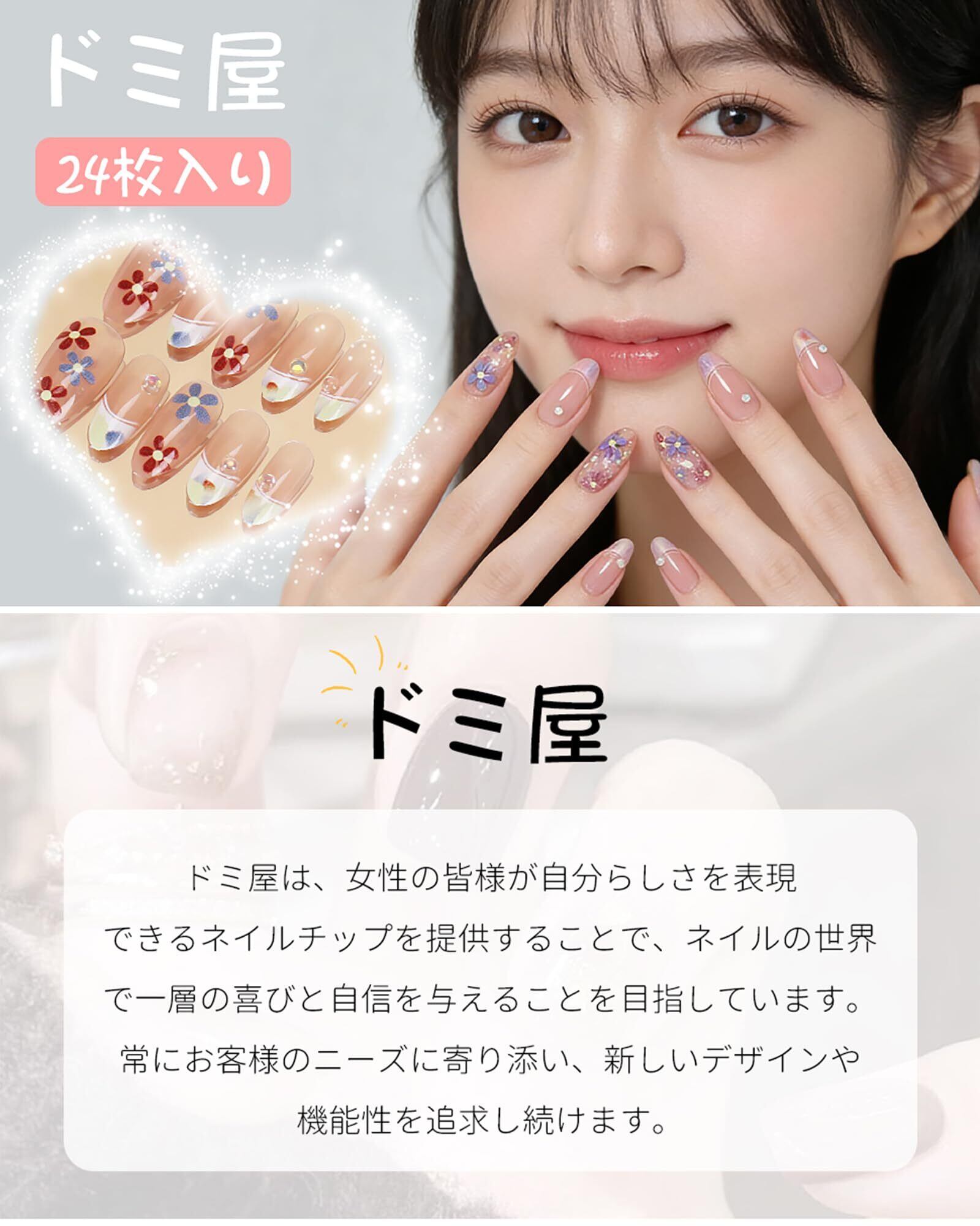【注意】内容:ネイルチップ24枚+付替え用両面テープ+取り外し用ウッドスティック1個+爪やすり1個。