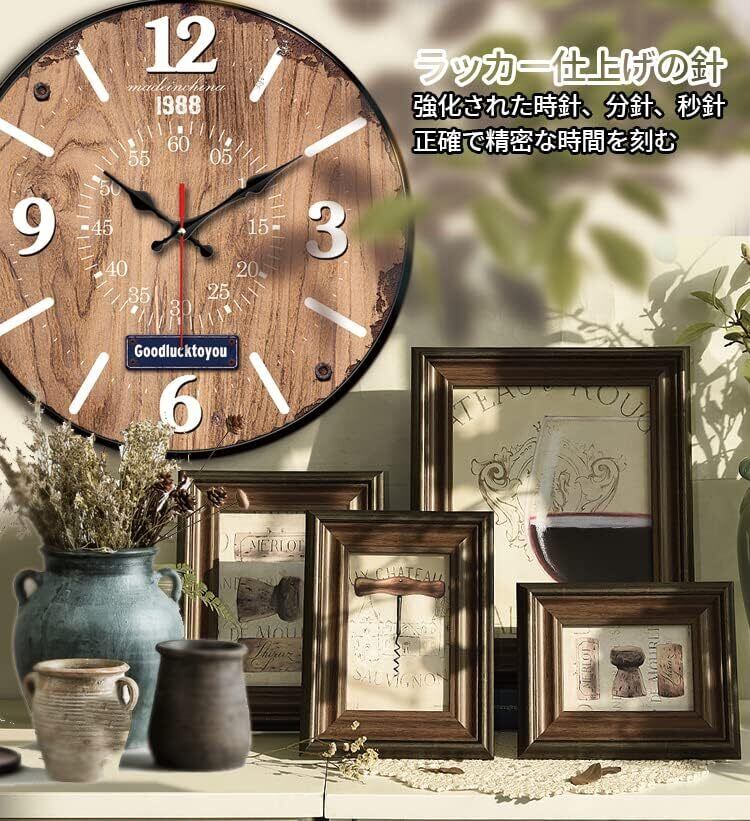 掛け時計 シンプルで耐久性のある 正確なタイムキーピング 复古 おしゃれ インテリア 時計 壁掛け かけ時計 おしゃれ モダン 静音 連続秒針 丸型 ウォールクロック デジタル 大数字 見やすい wall clock 12インチ living room 寝室 装飾(ブラウン,ガラスなし)