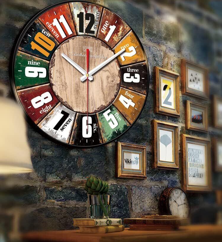 【ヴィンテージデザイン】視認性の高い色違いのマス目で異なる時間を表示するデザインの壁掛け時計は、無垢材を使用し、壁掛け時計に錆のような色で塗装を施し、ヨーロピアンヴィンテージの雰囲気を醸し出し、お部屋に魅力を与えます(ミラーなし)。