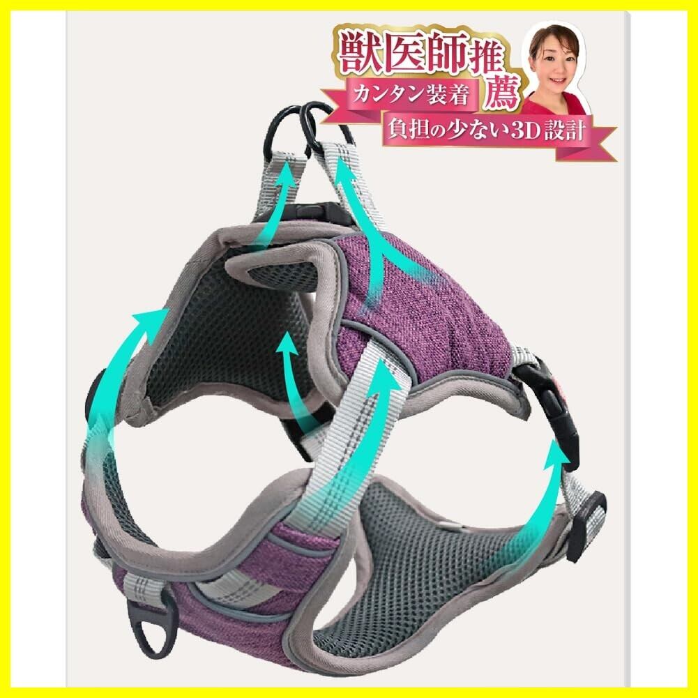 【獣医師推薦】犬 ハーネス (2ステップで簡単装着・首やお腹への負担軽減) 夜間反射材 サイズ調節可能 小型犬 中型犬 大型犬 (くすみパープル, XS)