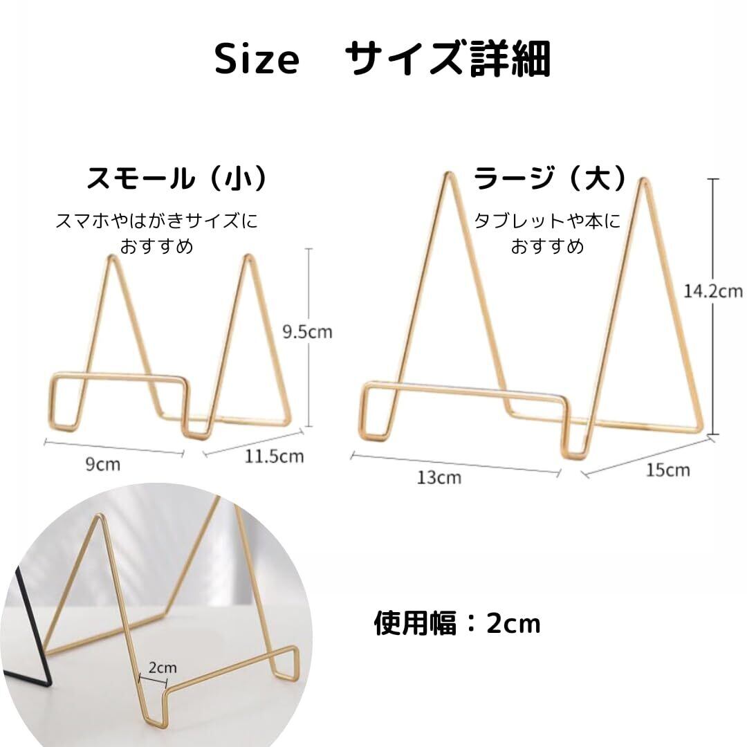 【おしゃれな卓上スタンド】 おしゃれにスマートに、飾りたいものはありませんか?マルチに活用できるこちらのスタンドは2サイズ・2カラーからお選びいただけます。厚さ2cmまでの様々なサイズ・形状のものに対応しています。