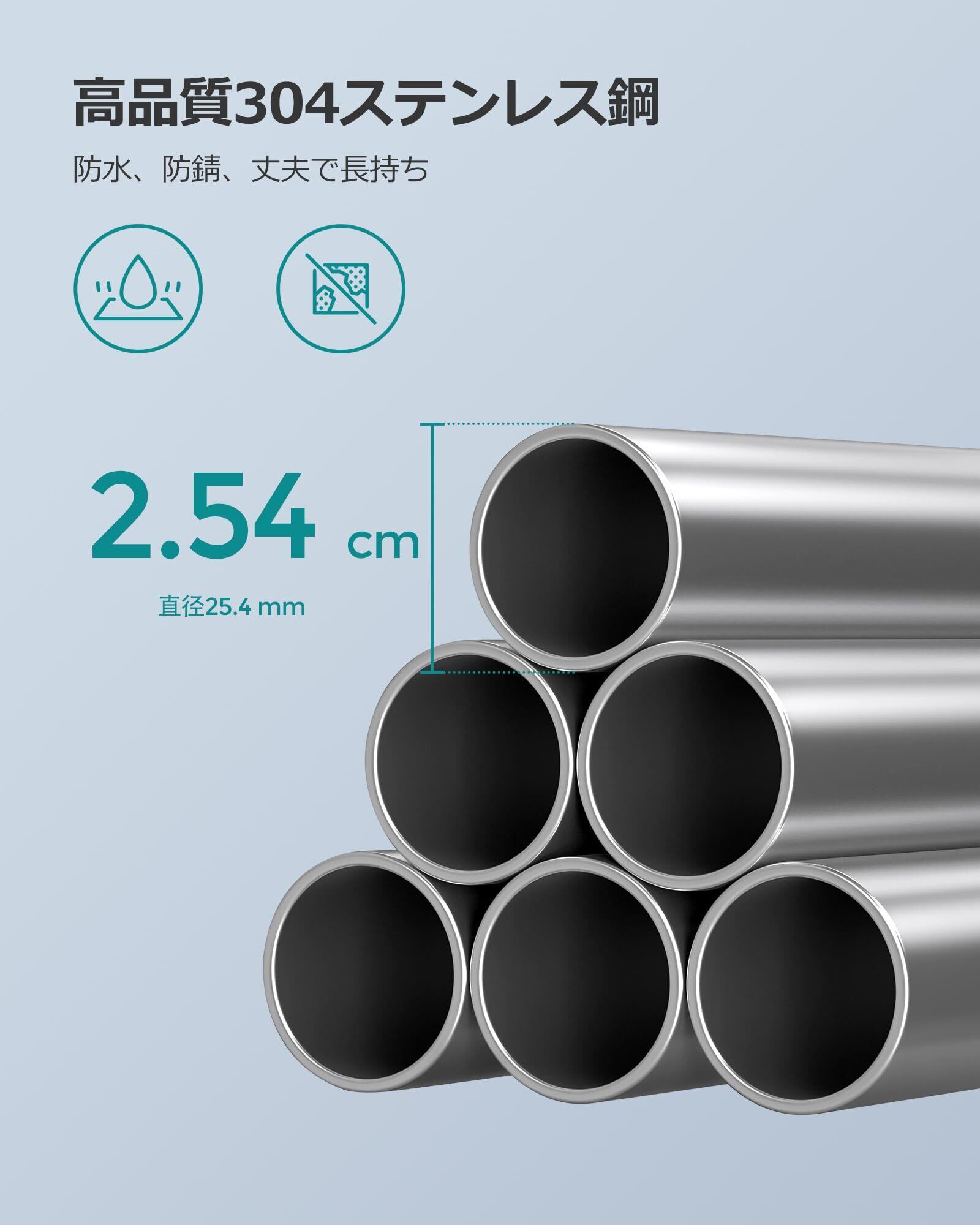 【上質な素材】304ステンレス製のシャワーラックは、防水性と耐錆性を備え、湿気の多い浴室でも十分に使用できます。頑丈な構造のこの浴室収納ラックは、長年にわたってお使いいただけます。