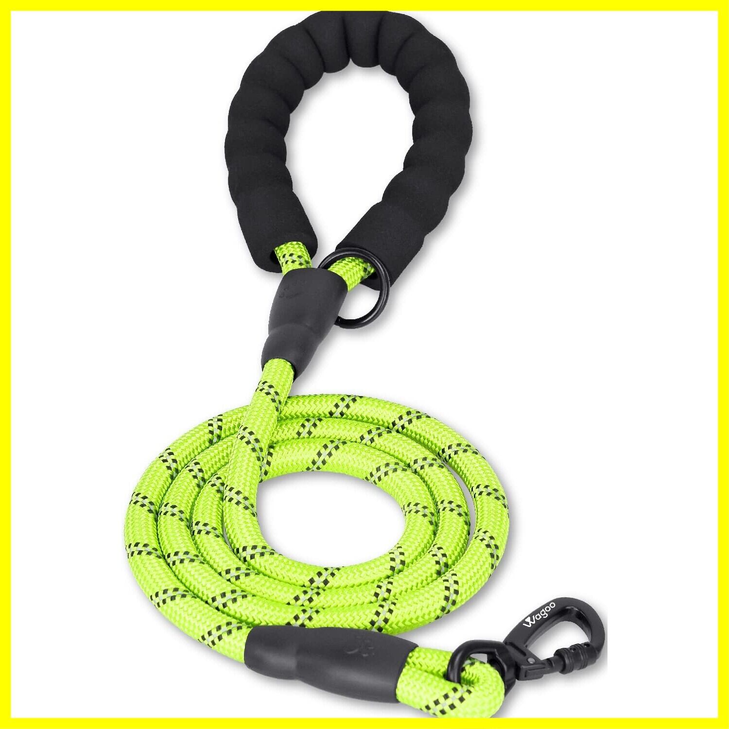 犬 リード 持ちやすい スポンジハンドル 丈夫 ロープ 1.5m 小型犬 中型犬 大型犬用リード しつけ 訓練 伸縮 (太さ1.0cm/M, イエローグリーン)