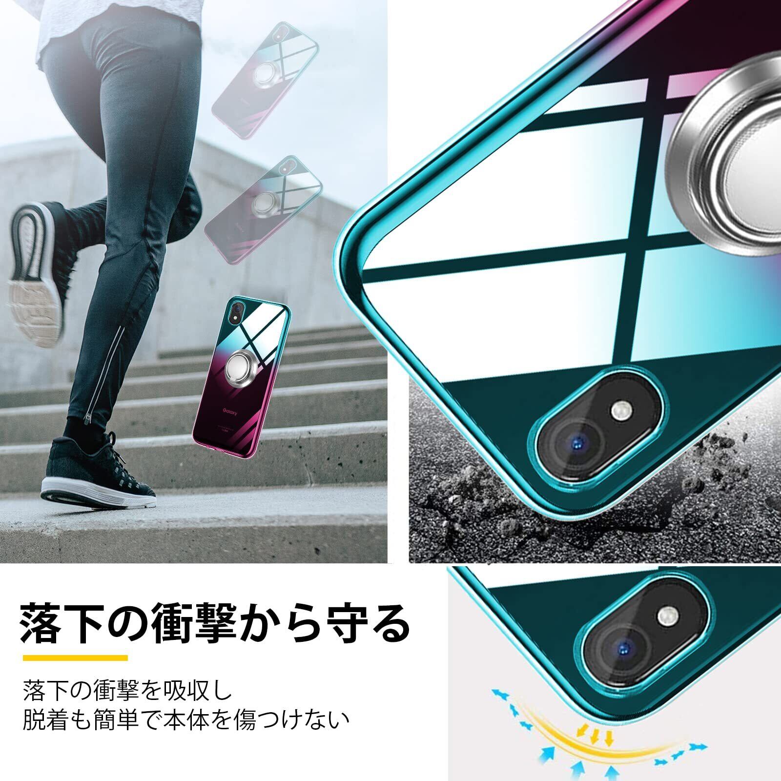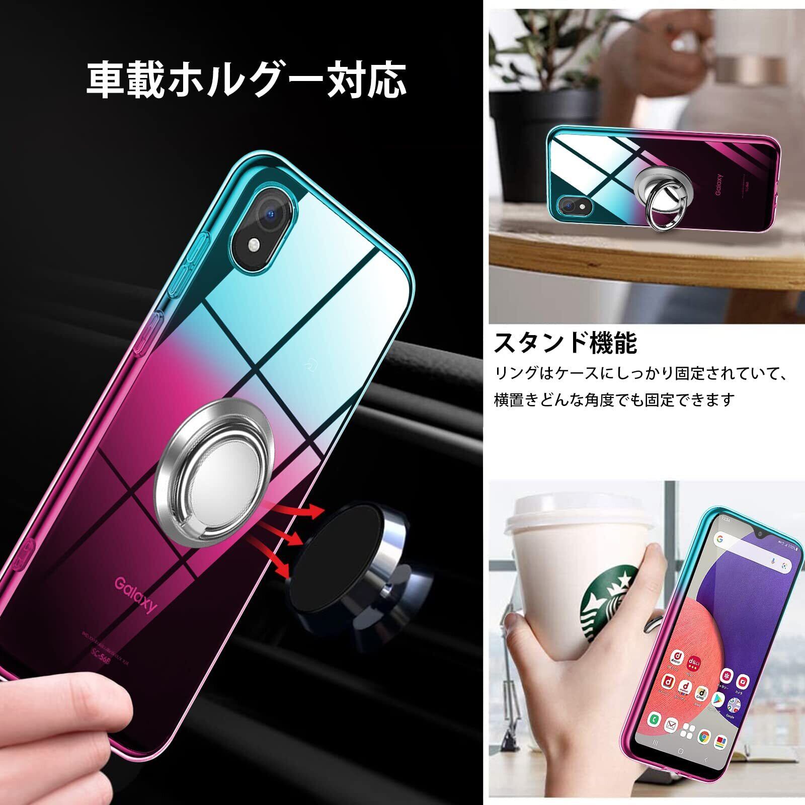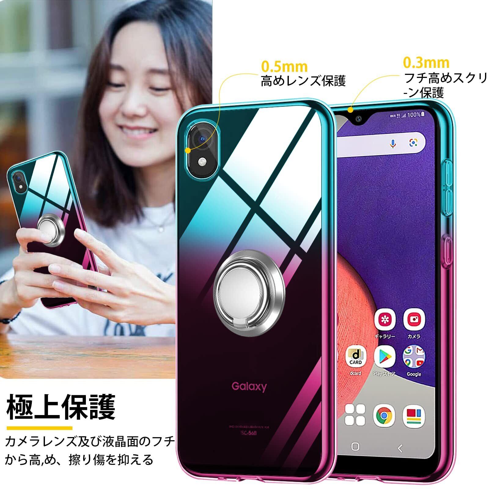 Galaxy A22 5G ケース リング 透明 tpu 薄型 SC-56B スマホケース 軽量シリコン グラデーション色 ケース 耐衝撃 指紋防止 車載ホルダー対応 防塵 一体型 人気 携帯カバー ストラップホール付き ギャラクシー A22 カバー 绿の粉