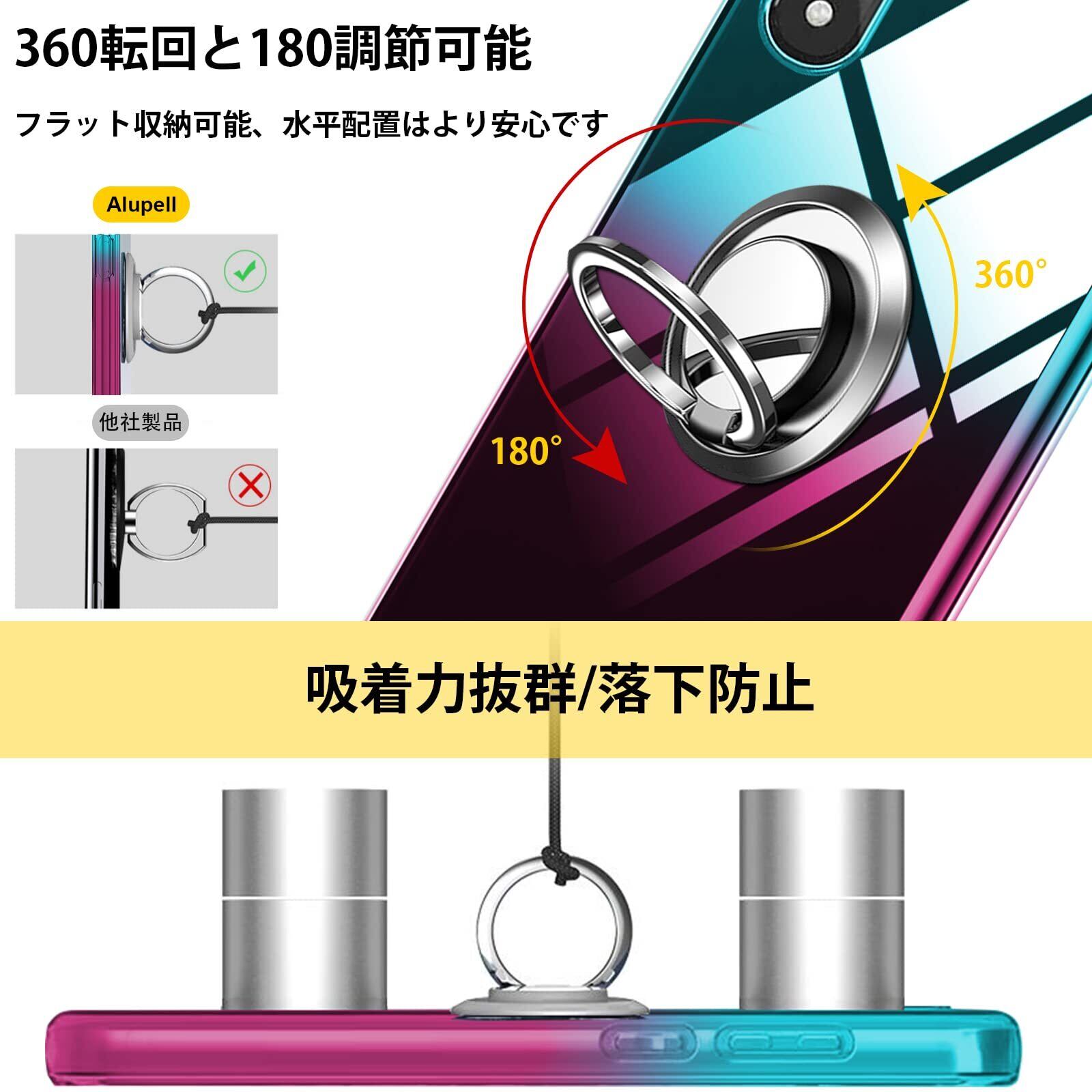 【360°回転】ブラケットは360°回転できます、垂直画面で小説を読むことができます、または、画面全体でビデオを見る。一指着る式で、指がリングに通り抜け、片手で携帯を操作でき、落下防止します。