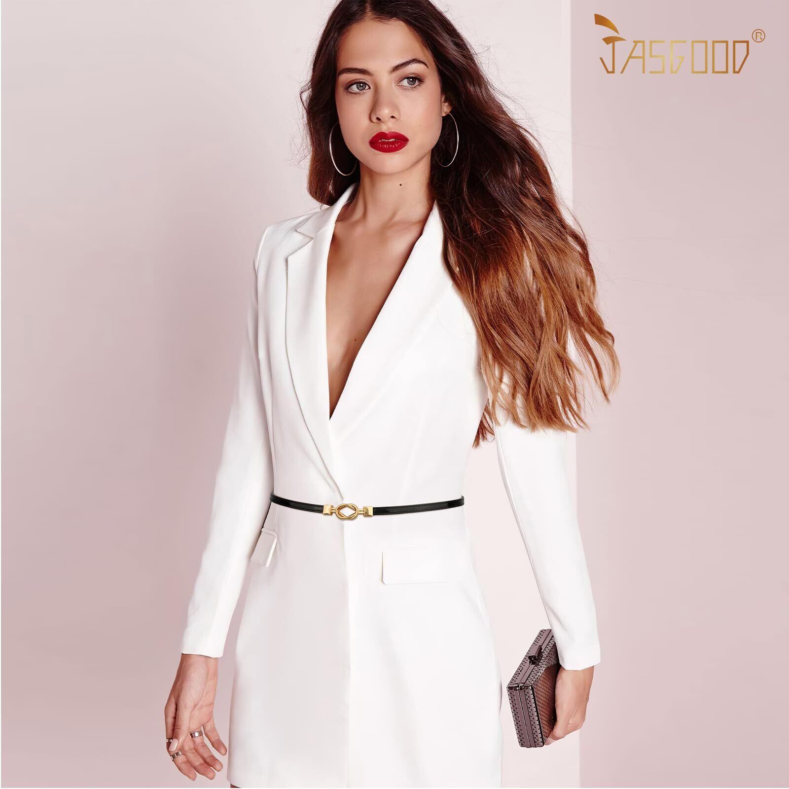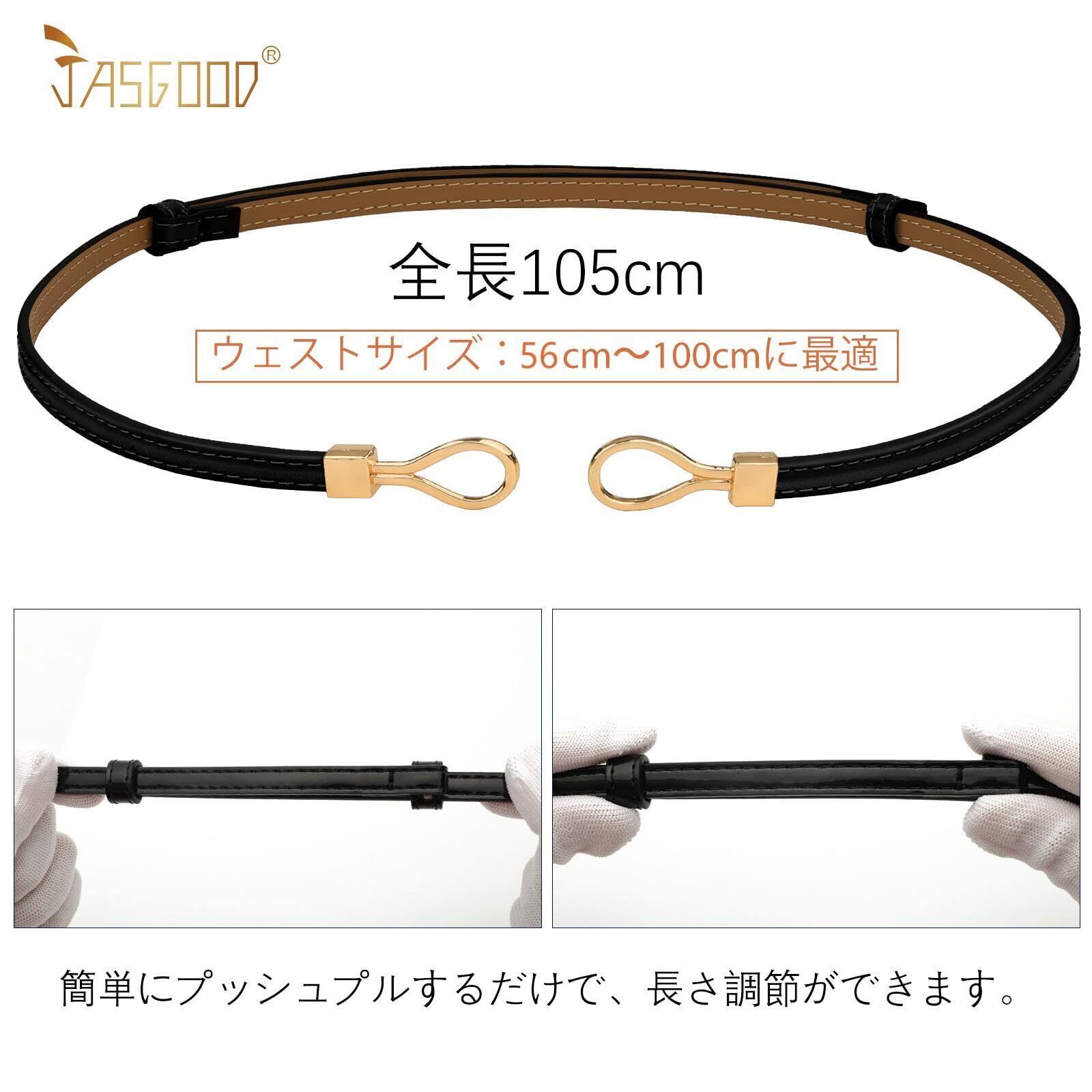 [JASGOOD] 細ベルト レディース 本革 スカートベルト おしゃれ スーツ 仕事 結婚式 大きいサイズ 無階段サイズ調整 ウエストマーク