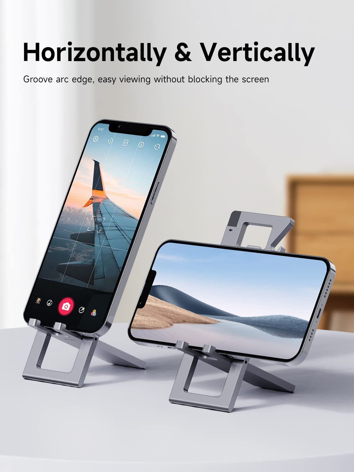 角度調整可能:この携帯電話スタンド角度は0°から90°まで無段階のギア調整を実現できます。 調整可能なので、番組を見たり、電子書籍を読んだり、ベッドサイドの電話スタンドとして使用したりするのに最適な視野角を得ることができます。