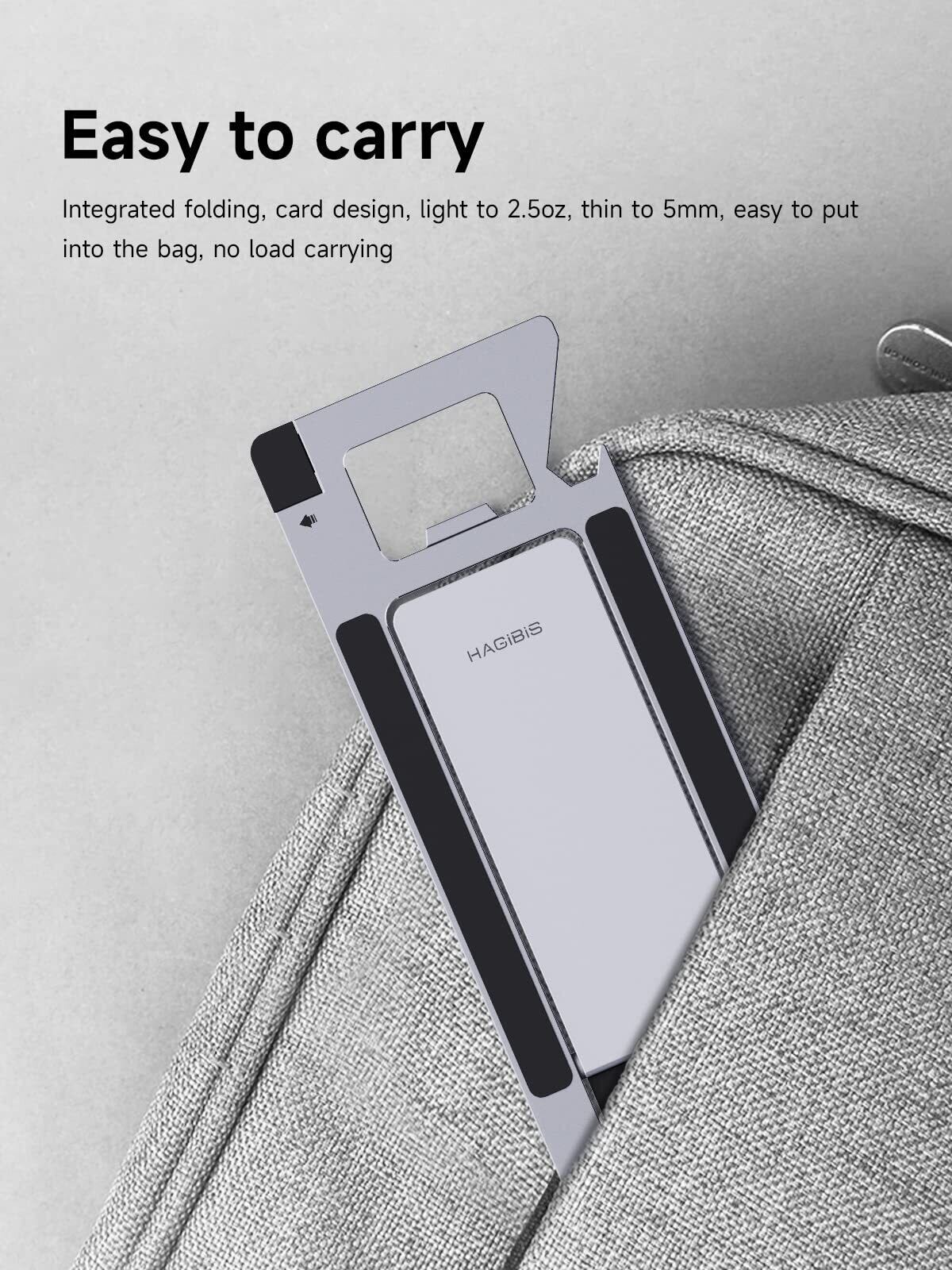 超スリム:Hagibis ZZ4 電話スタンドはスリムでスペースがなく、軽く、小さく、持ち運びが簡単です。 旅行や出張の際にもポケットやバッグに簡単に入れることができます。 両手を解放して、いつでもどこでも YouTube ビデオや Facetime 通話を楽しむことができます。