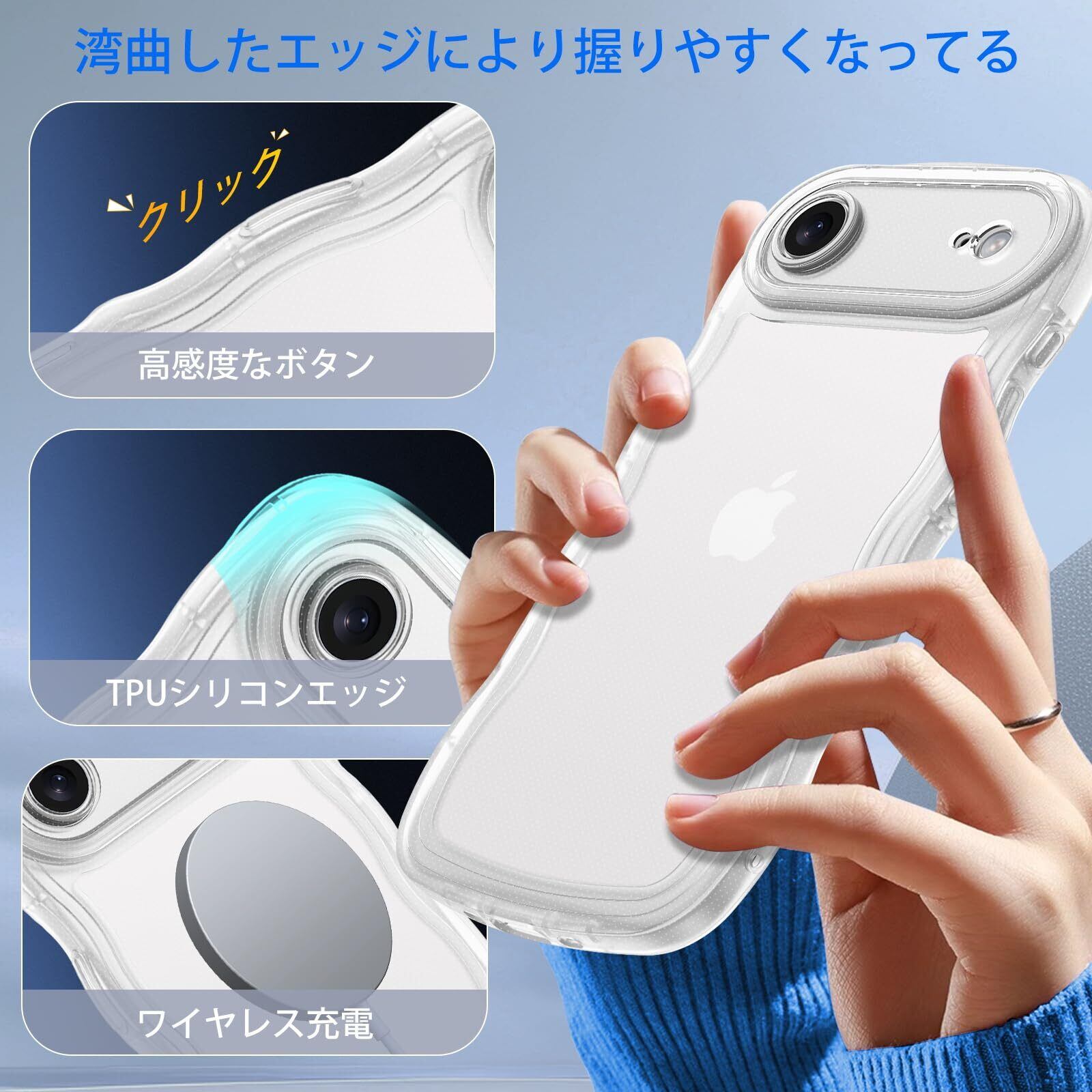 【ウェーブ湾曲縁&TPU肌触り】湾曲したエッジにより握りやすくなっています 17 Air透明ケースは滑らかな液体シリコンゴムと柔らかいTPU製で、耐傷性、耐指紋性、耐衝撃性に優れ、取り外しも簡単,お手入れし易い。