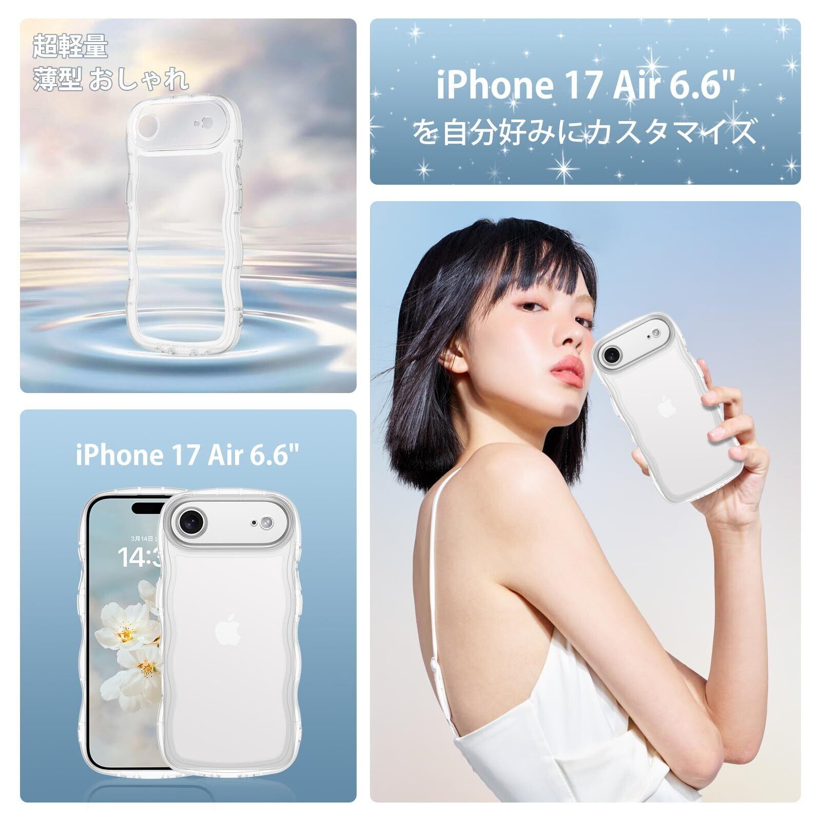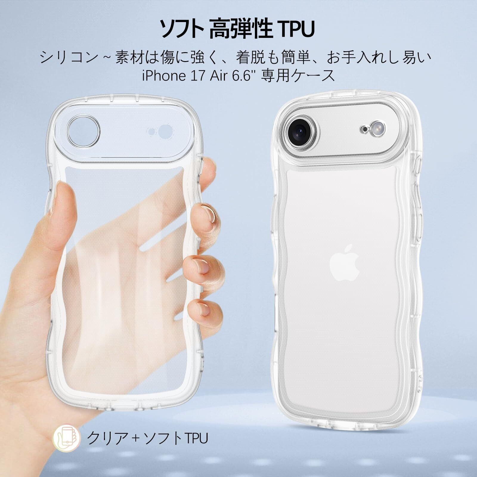 【iPhone 17 Air 対応】TPUケースはiPhone 17 Airのみに適合します。スクリーンプロテクターは付属していません。ボタンが軽くて押しやすい。マツと感ウェーブエッジの純透明ケース