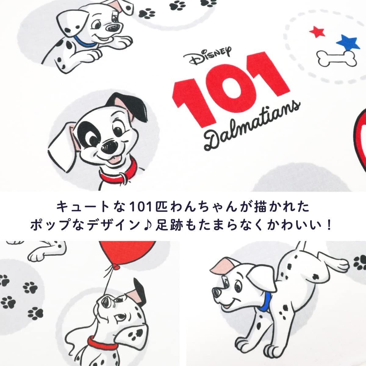 【こだわりのデザイン】キュートな101匹わんちゃんが描かれたポップなデザイン足跡もたまらなくかわいい!