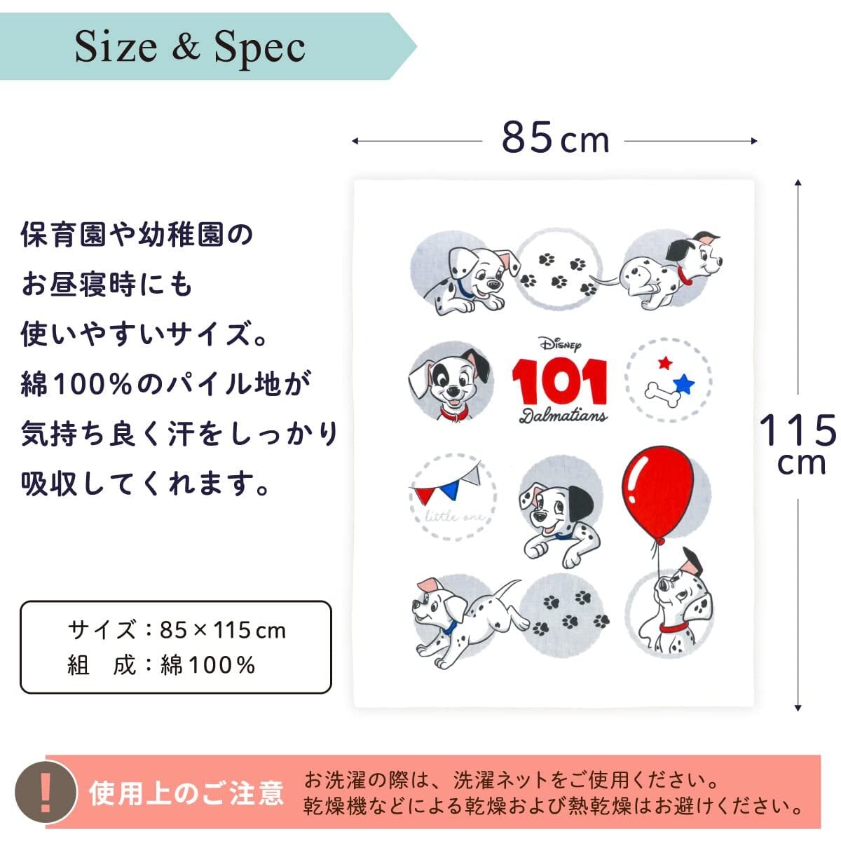 un doudou ベビー タオルケット 85×115cm Disney 101匹わんちゃん 表側ガーゼ 裏側パイル地 綿100% ホワイト NZ8626