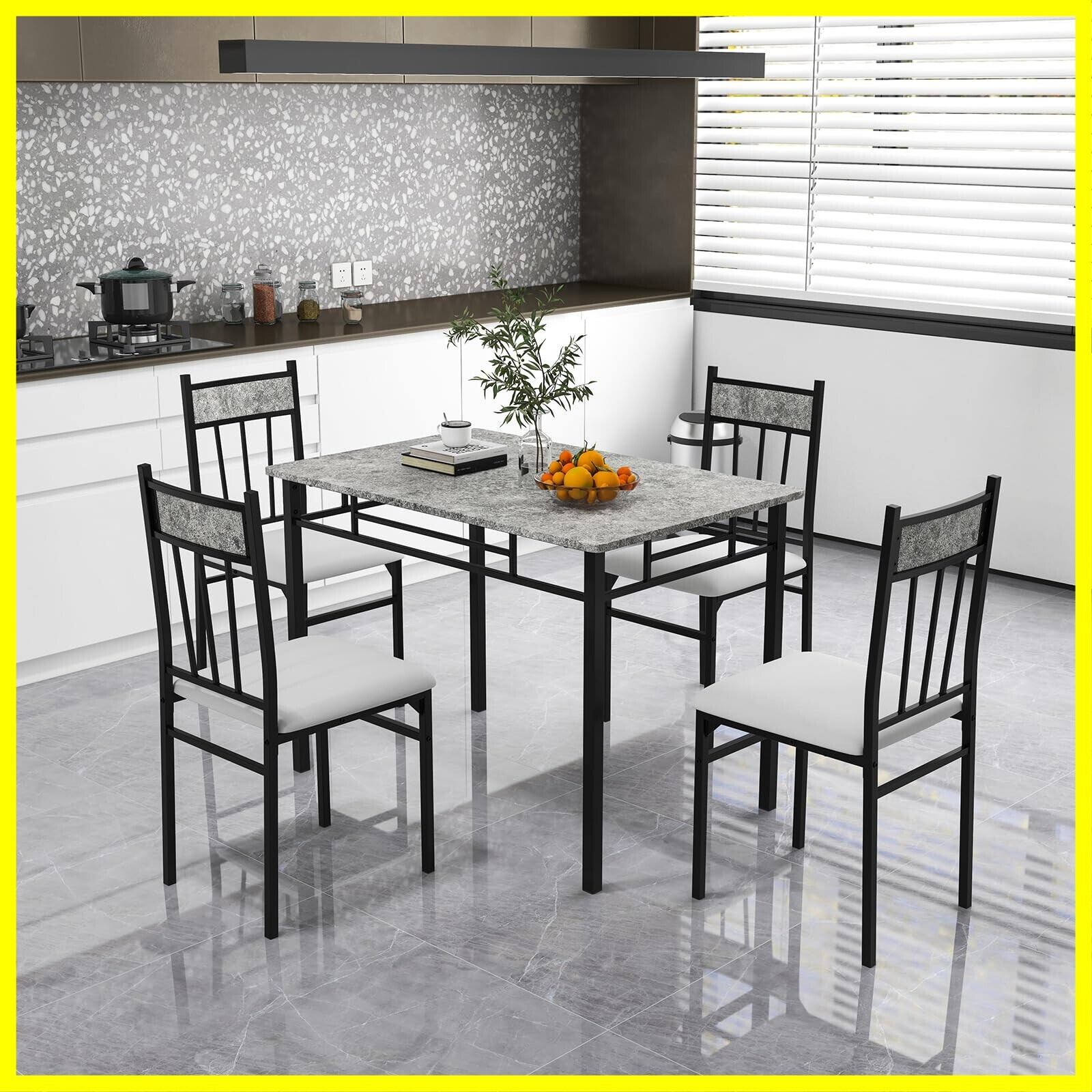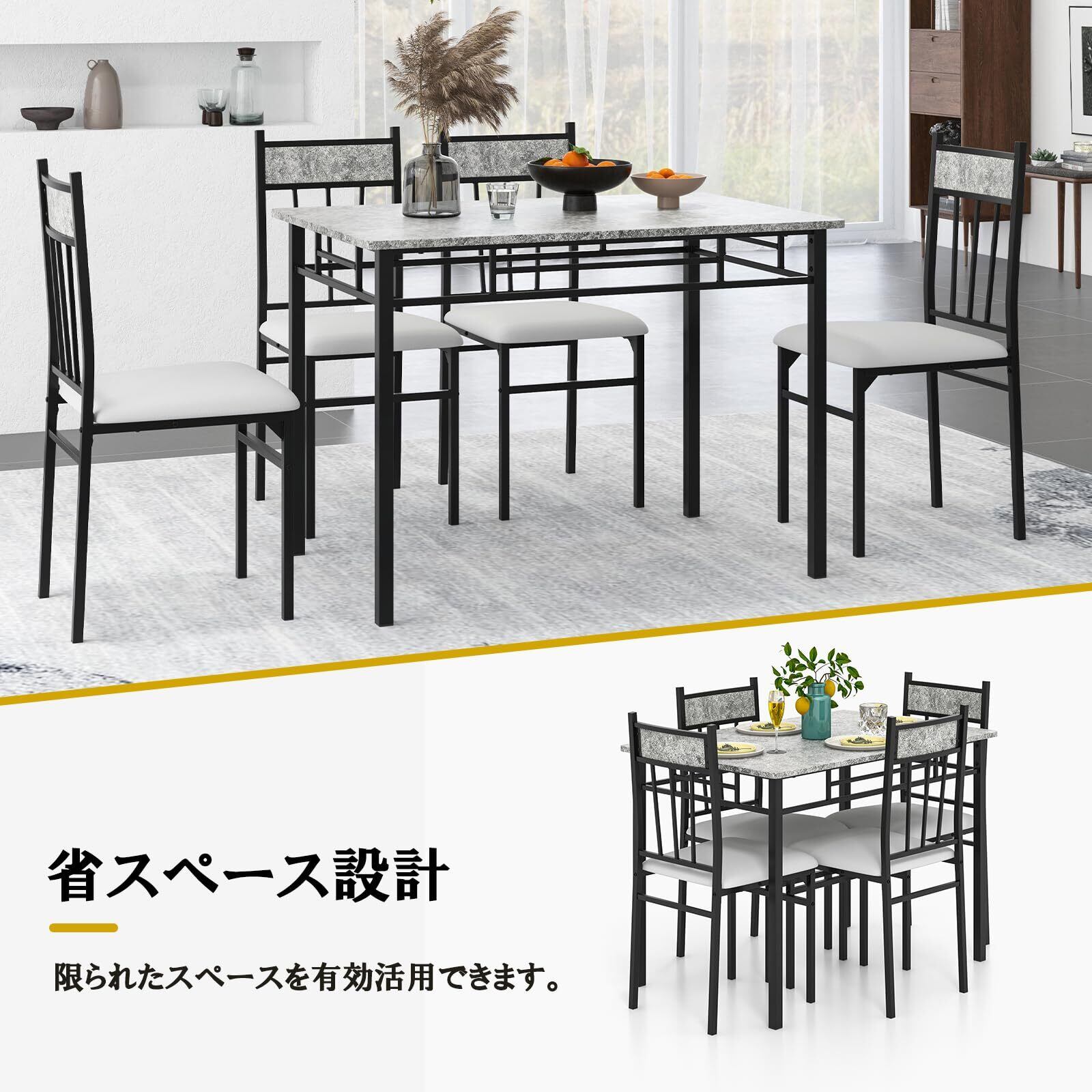 GYMAX ダイニングセット ダイニングテーブルセット 4人用 5点セット 自立型 ダイニングテーブル 食卓 テーブル 幅107cm 1点 チェア 4脚 キッチン 組立品 コンパクト おしゃれ 大理石柄 モダン スタイリッシュ 新生活 (4人用-グレー)