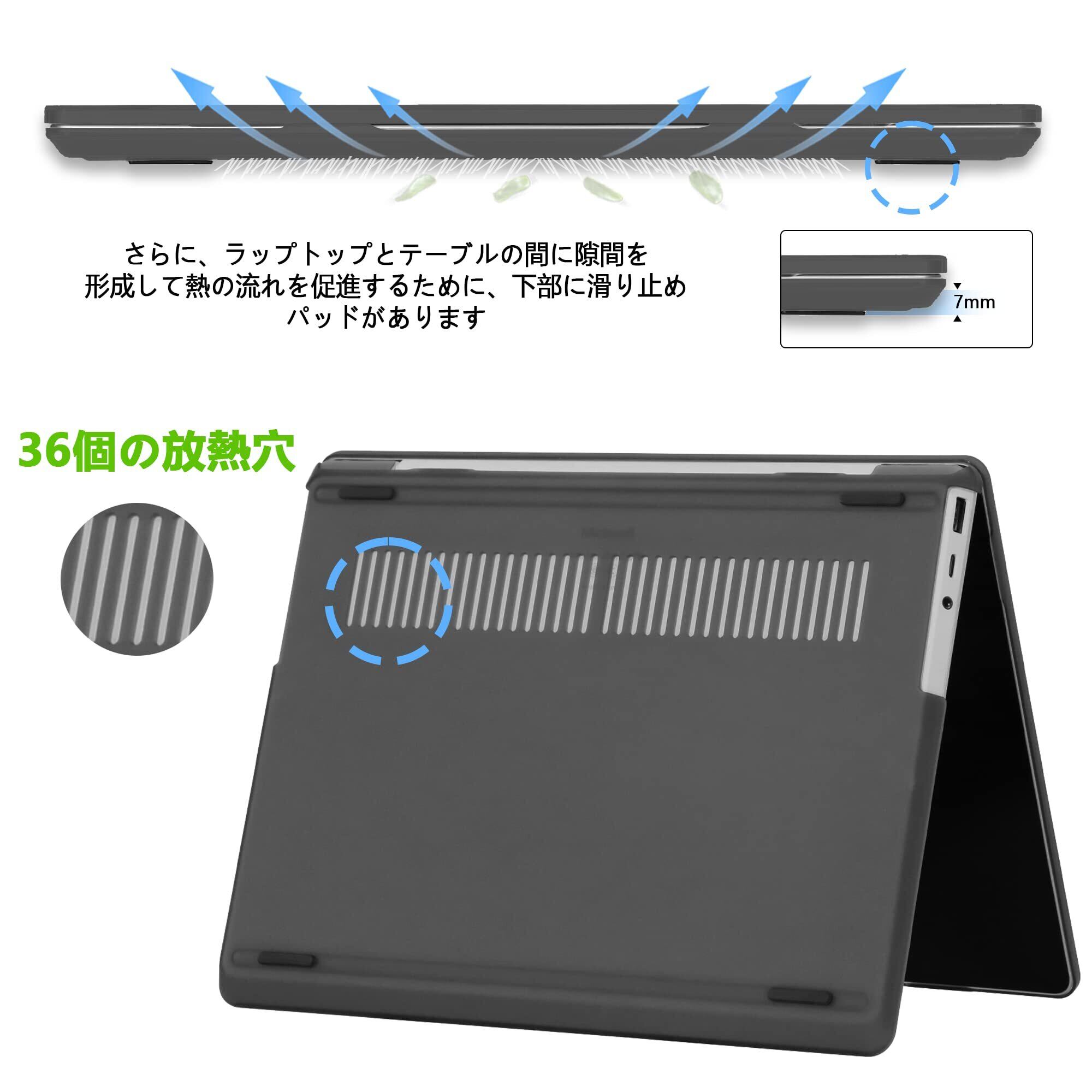 【Surface Laptop専用に設計された冷却設計】本体のファン位置付近に40個の穴を設け、素早く熱を逃がすことができるようにしました。 ケースのボトムカバーにある4つの滑り止めの下敷きは、表面を一定の高さまで上げることで、一定のスペースにエアフローを確保し、冷却性能を高めています。