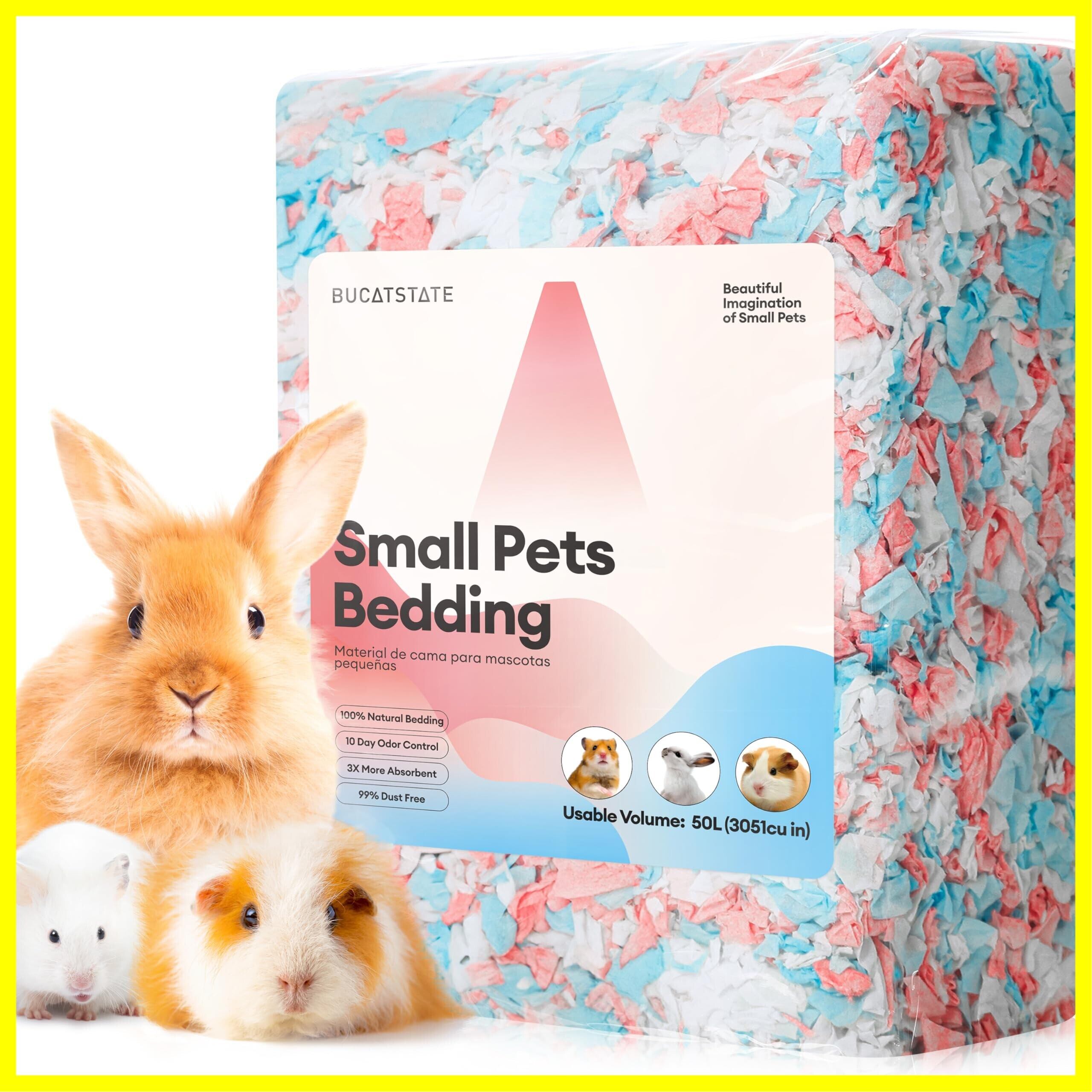 BUCATSTATE ハムスター 床材 紙 無塵【圧縮パッケージ 大容量】 広葉樹マット 小動物 床材 雲の上で眠るような柔らかさ 超ふわふわ クラウドシリーズ 天然素材 紙 消臭 快適 うさぎ マット モルモット ウサギ ハリネズミ フクロモモンガ 小動物用50L [ピンク+ブルー+ホワイト]