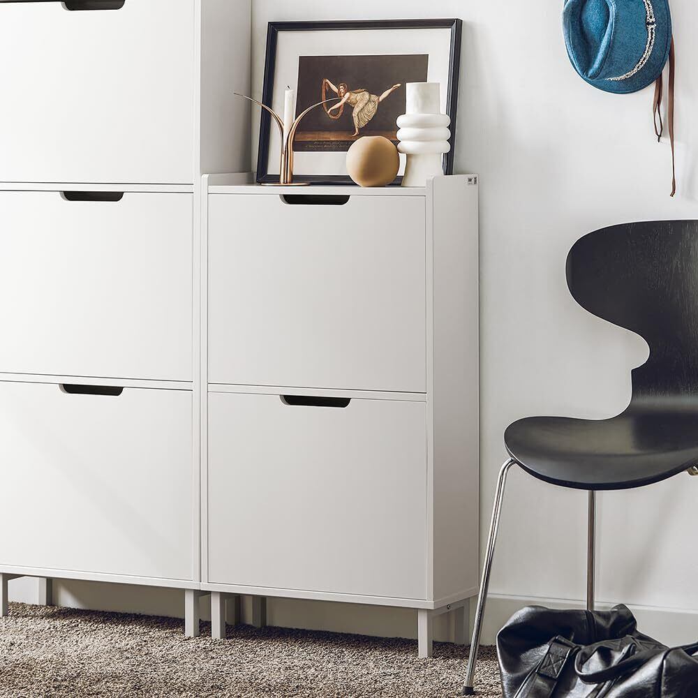 SoBuy シューズボックス 薄型 靴箱 下駄箱 スリム 幅50*奥19*高さ91cm 大容量 省スペース 木製 シューズラック 靴 収納 靴棚 玄関収納 靴入れ シューズキャビネット 玄関ベンチ (FSR151-W)