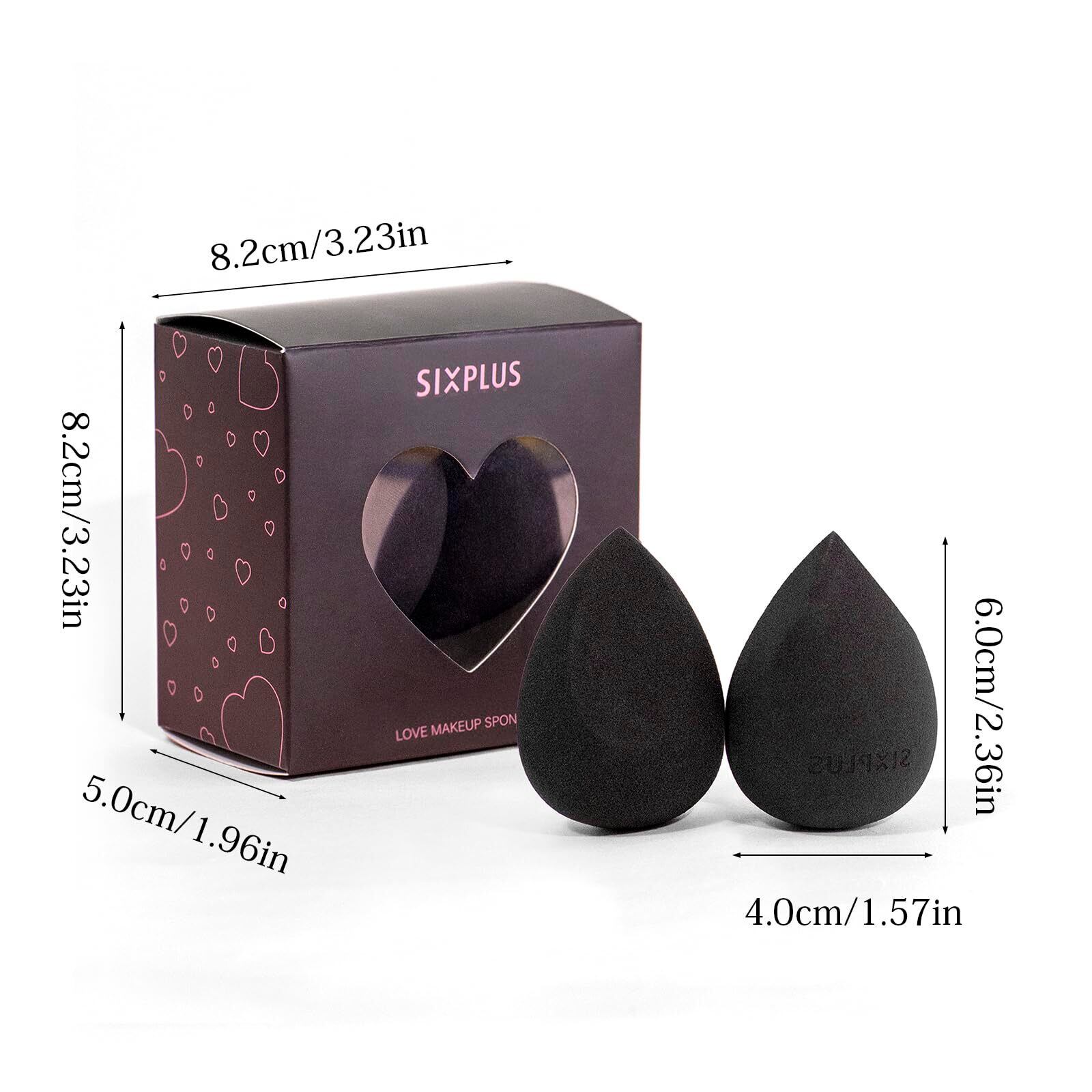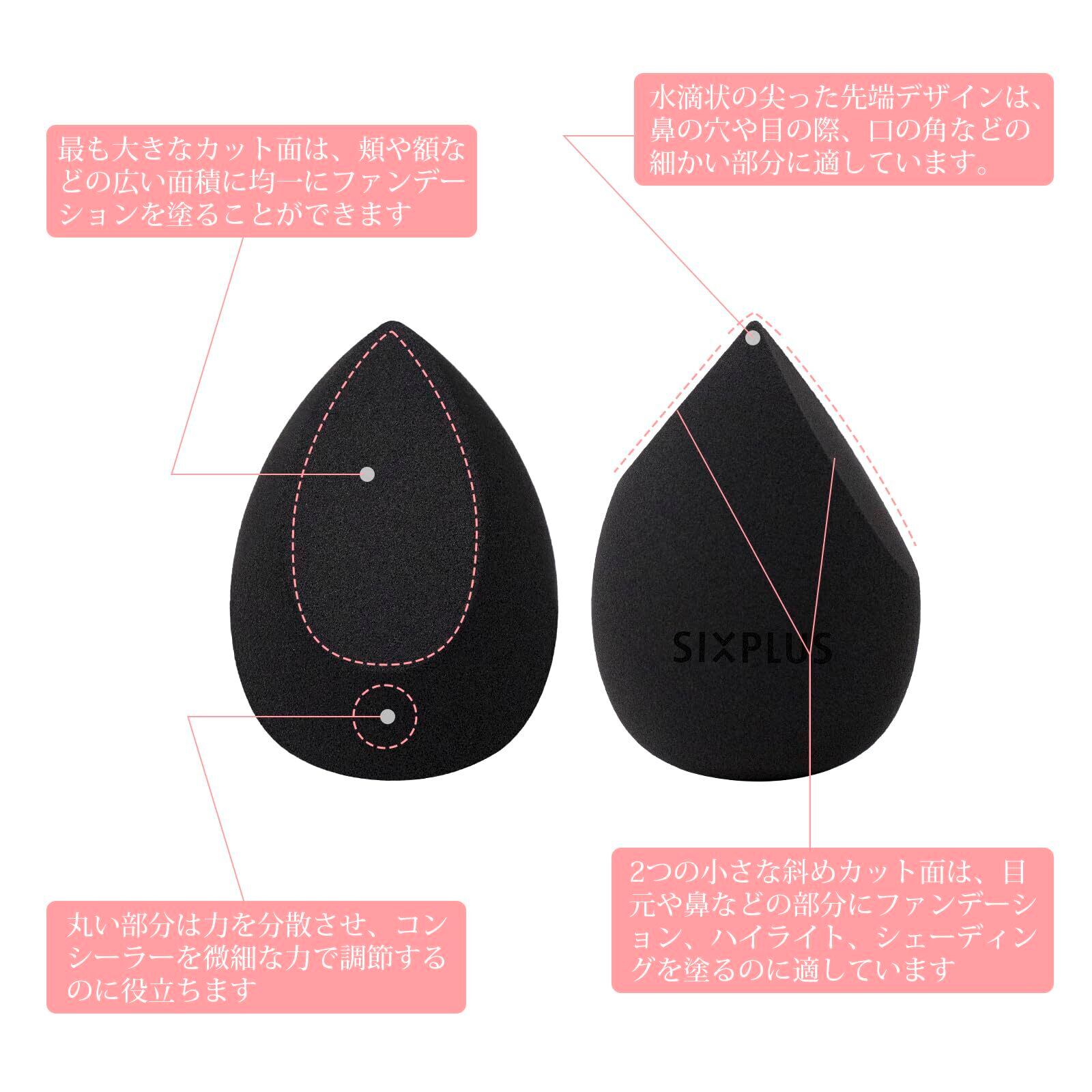 SIXPLUS シックスプラス 2個入 多機能メイク用スポンジパフ 化粧スポンジ ドロップ型 メイクアップスポンジ 斜めカット 乾湿兼用 柔らかいメイク道具 ふわふわ化粧パフ メイクパフ(ブラック: 一面カット *1 + 両面カット*1)