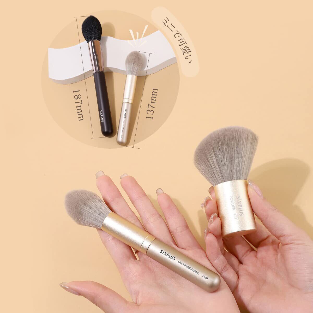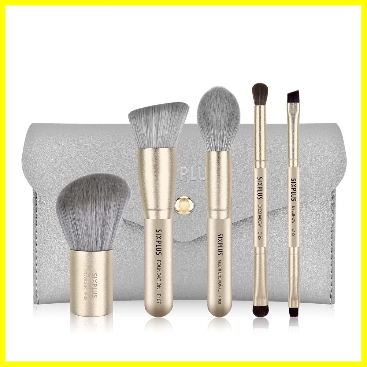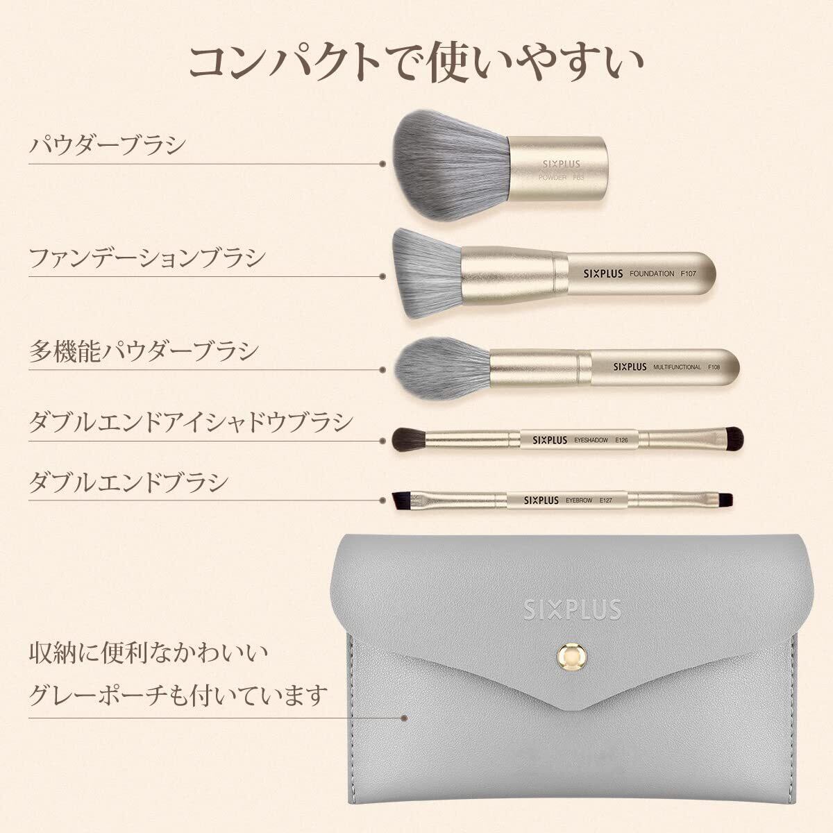 SIXPLUS 携帯用メイクブラシ5本セット Playシリーズ 柔らかな肌触り 多機能化粧ブラシ 専用メイク道具 粉含み力 化粧ポーチ付き グレーゴールド