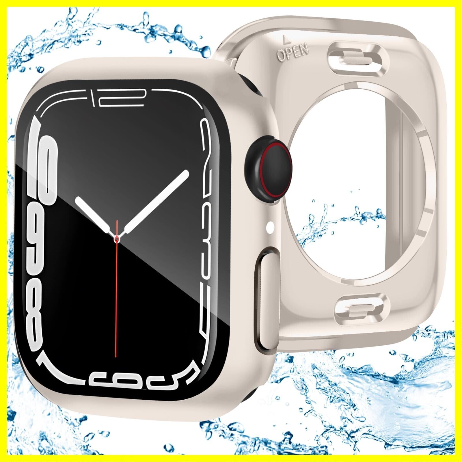 対応 Apple Watch ケース 40mm 41mm 42mm 44mm 45mm 46mm 49mm アップルウォッチ カバー 防水 2 in 1 前後の保護 アップルウォッチ ケース 耐衝撃 Apple Watch カバー 全面保護 装着簡単 高耐久 高透過率 PC素材 Series 9/8/7 41mm 防水のスターライト