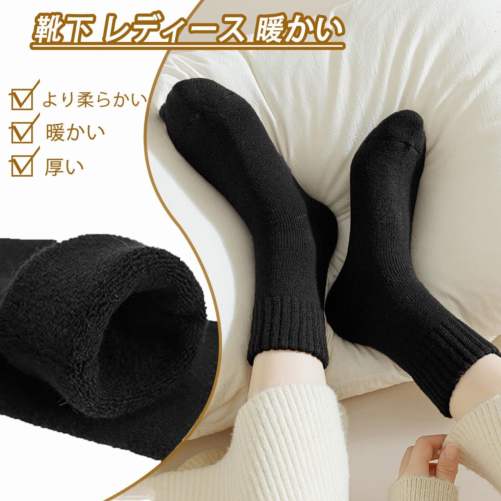 【暖かさを保つ】内側に柔らかいテリーを使用したこの靴下 レディース冬、熱を完璧に閉じ込めて足を暖かくドライに保ちます。快適なウールブーツソックスは、足を優しく包み込み、冬の間ずっと暖かく快適に保ちます。