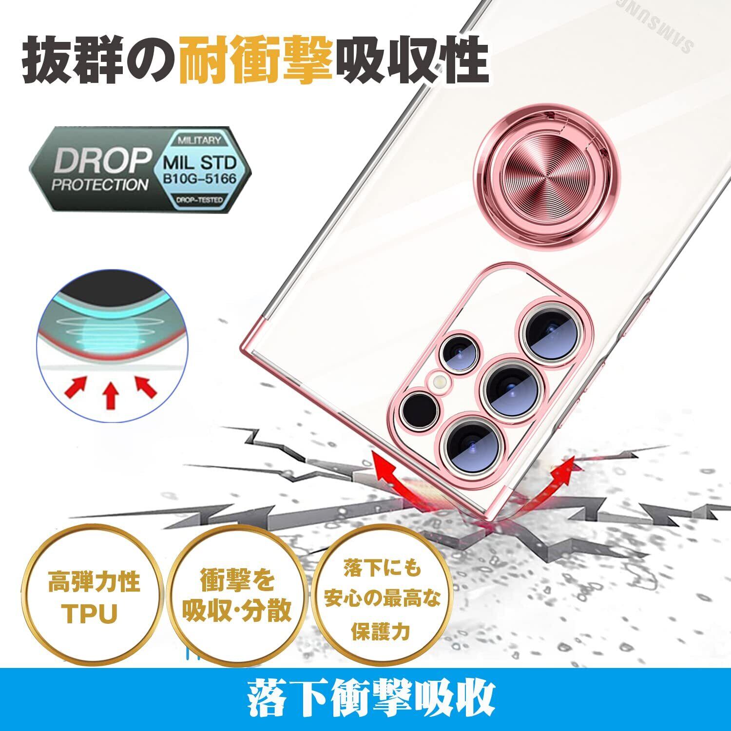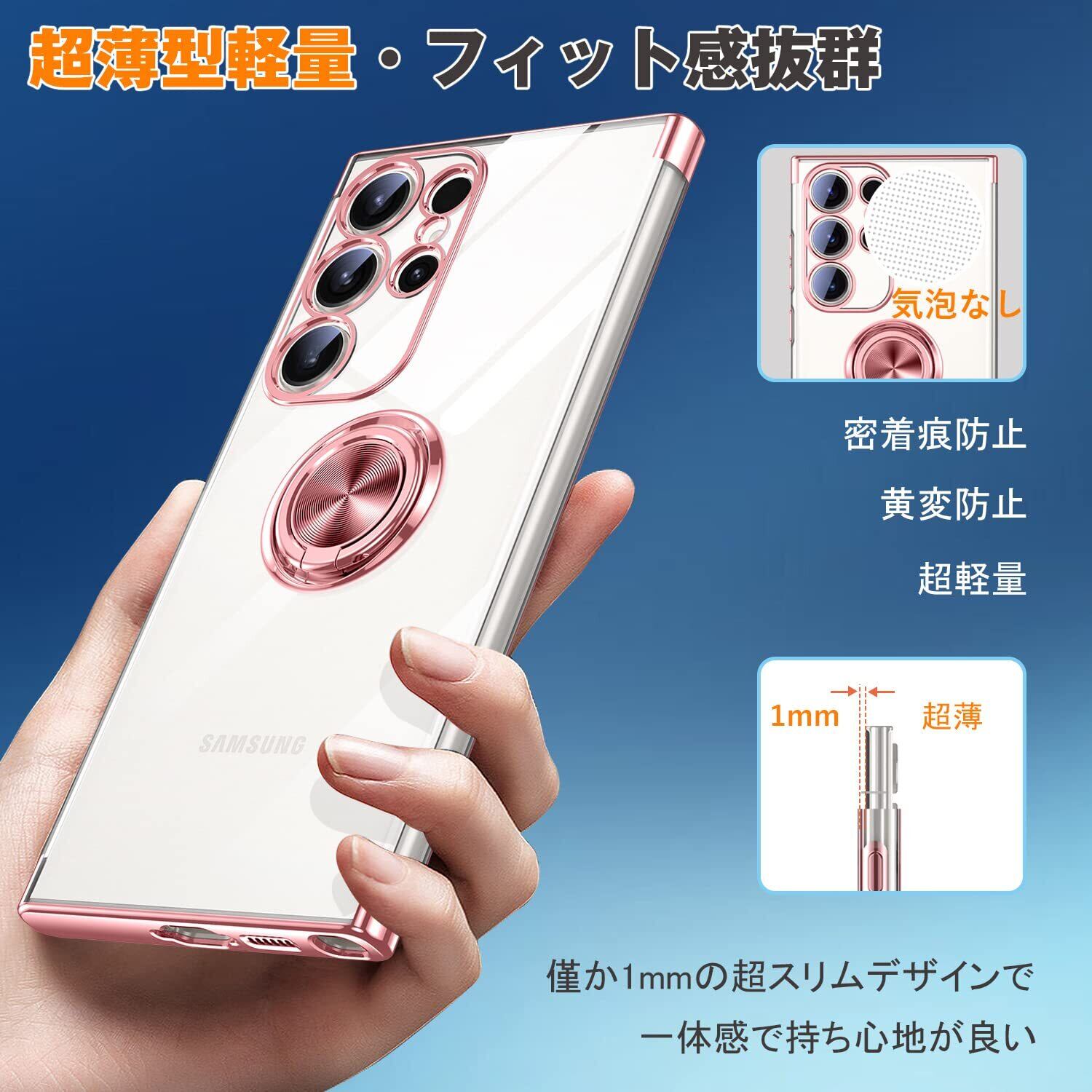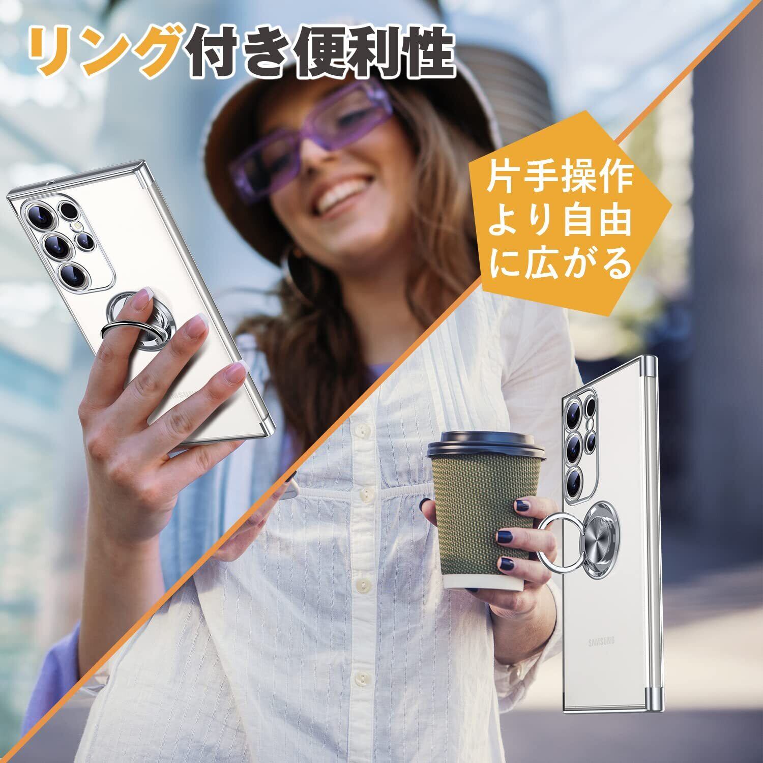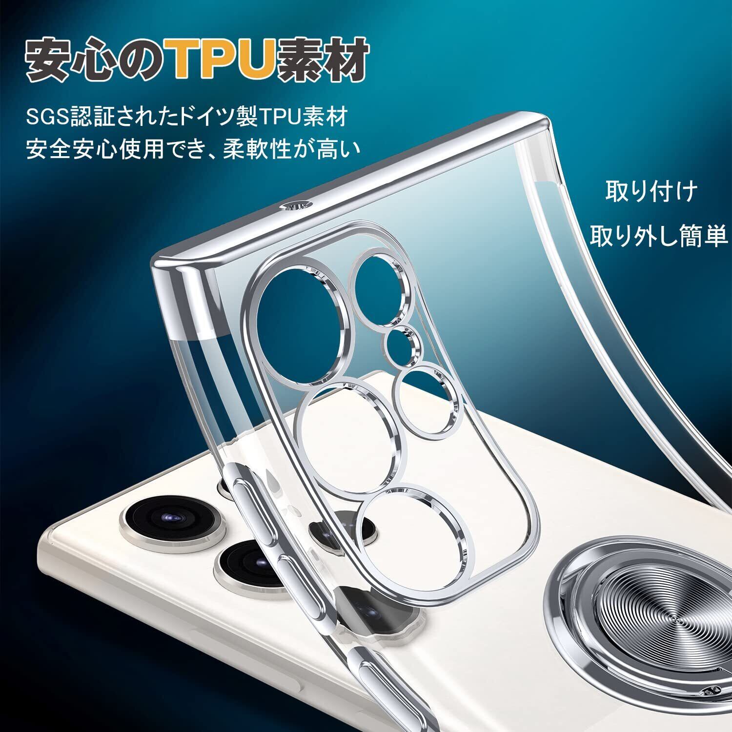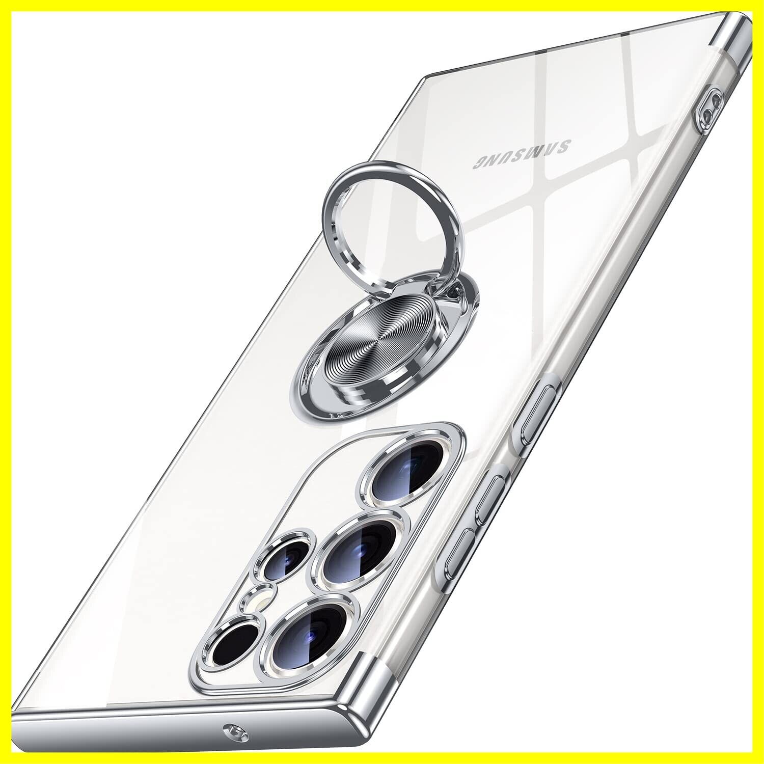 Galaxy S23 Ultra 用 ケース クリア リング付き Samsung ギャラクシー S23 ウルトラ/SC-52D / SCG20 カバー 透明 おしゃれ OURJOY スマホケース メッキ加工 ソフトケース 耐衝撃 軽量 薄型 ストラップホール付き スタンド機能 車載ホルダー対応 携帯ケース • シルバー