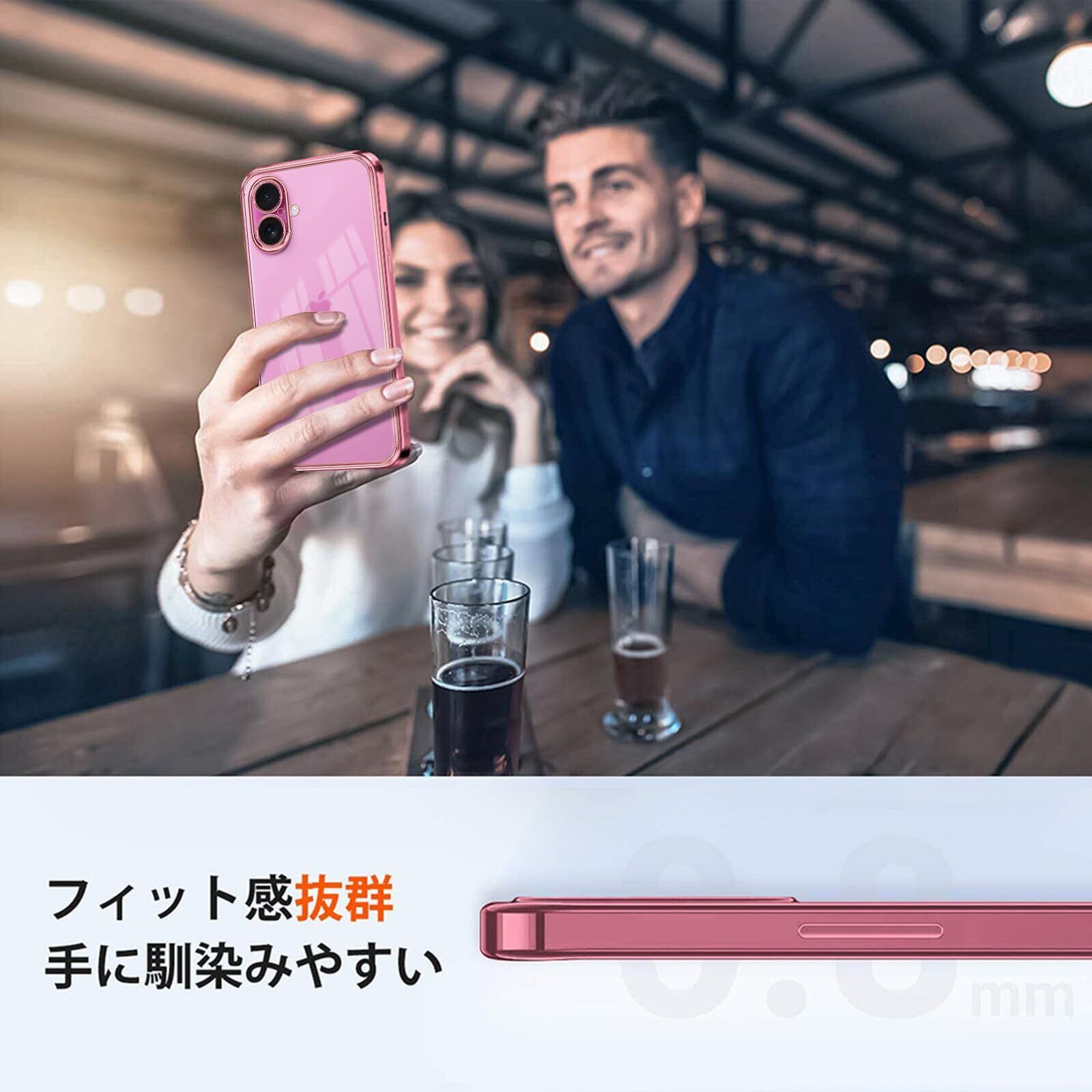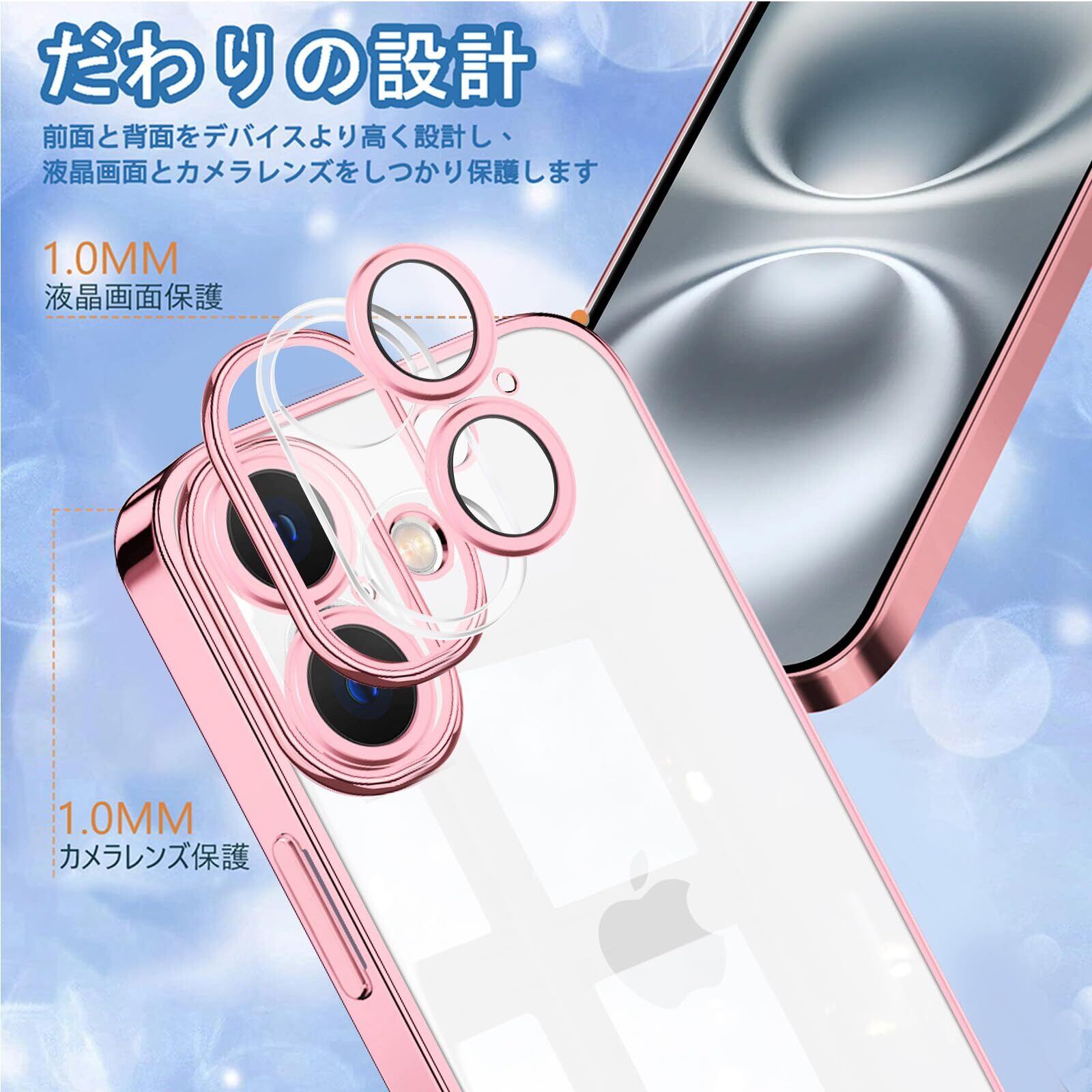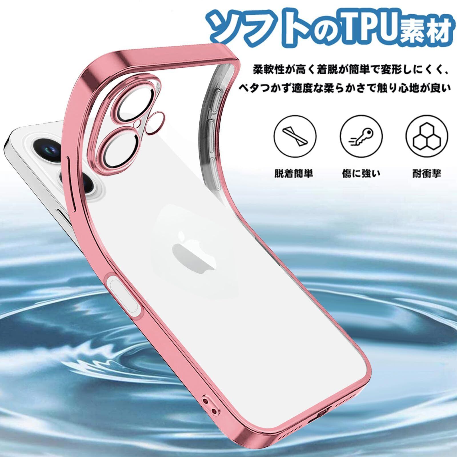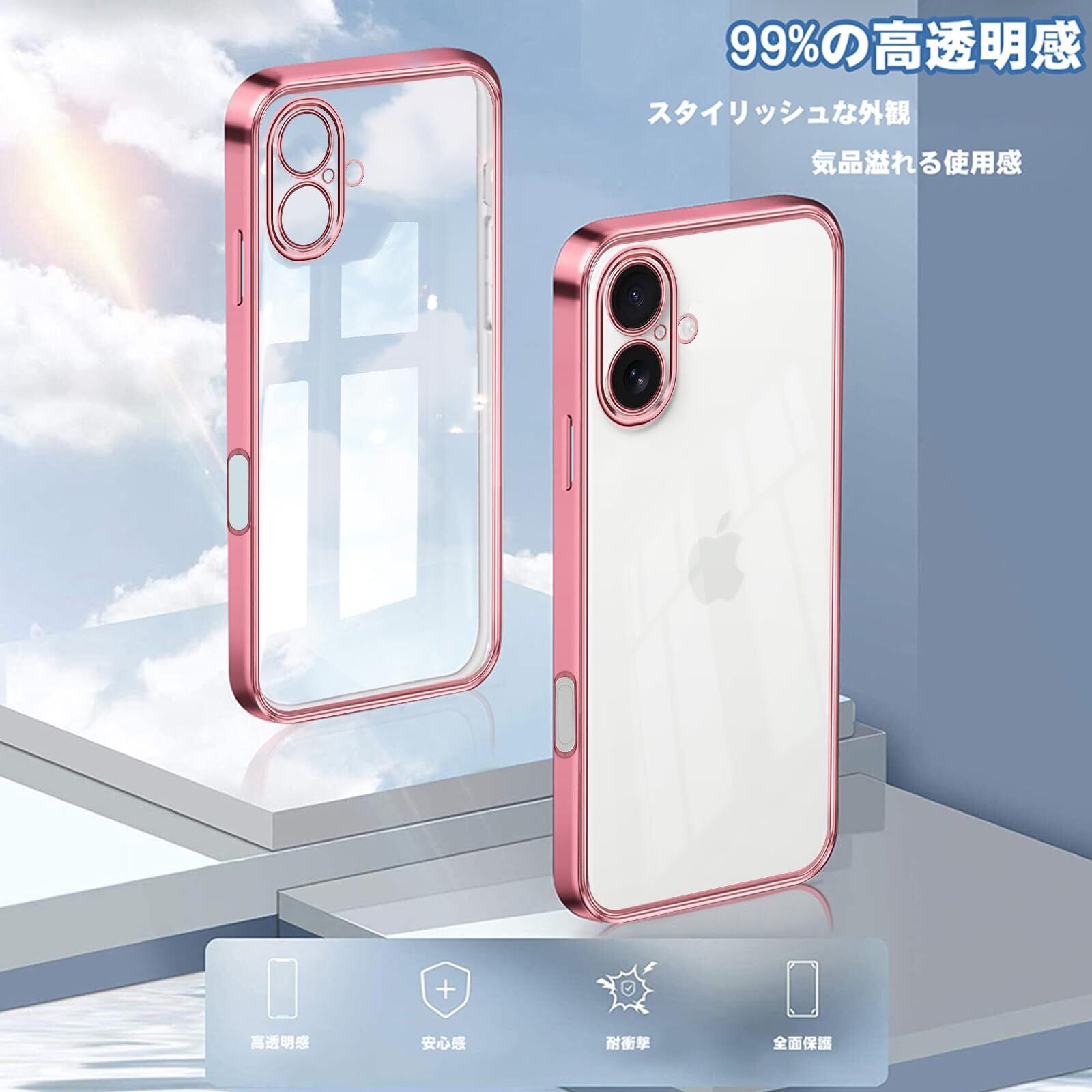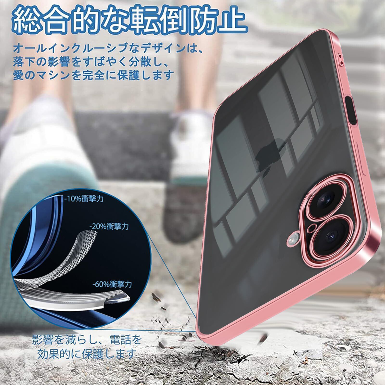 iPhone 16 Plus 用 ケース クリア レンズ保護 TPU 透明 耐衝撃 軽量「改良モデル」 ストラップホール付き ワイヤレス充電 アイフォン 16 plus カバー 6.7インチ スマホケース ローズゴールド
