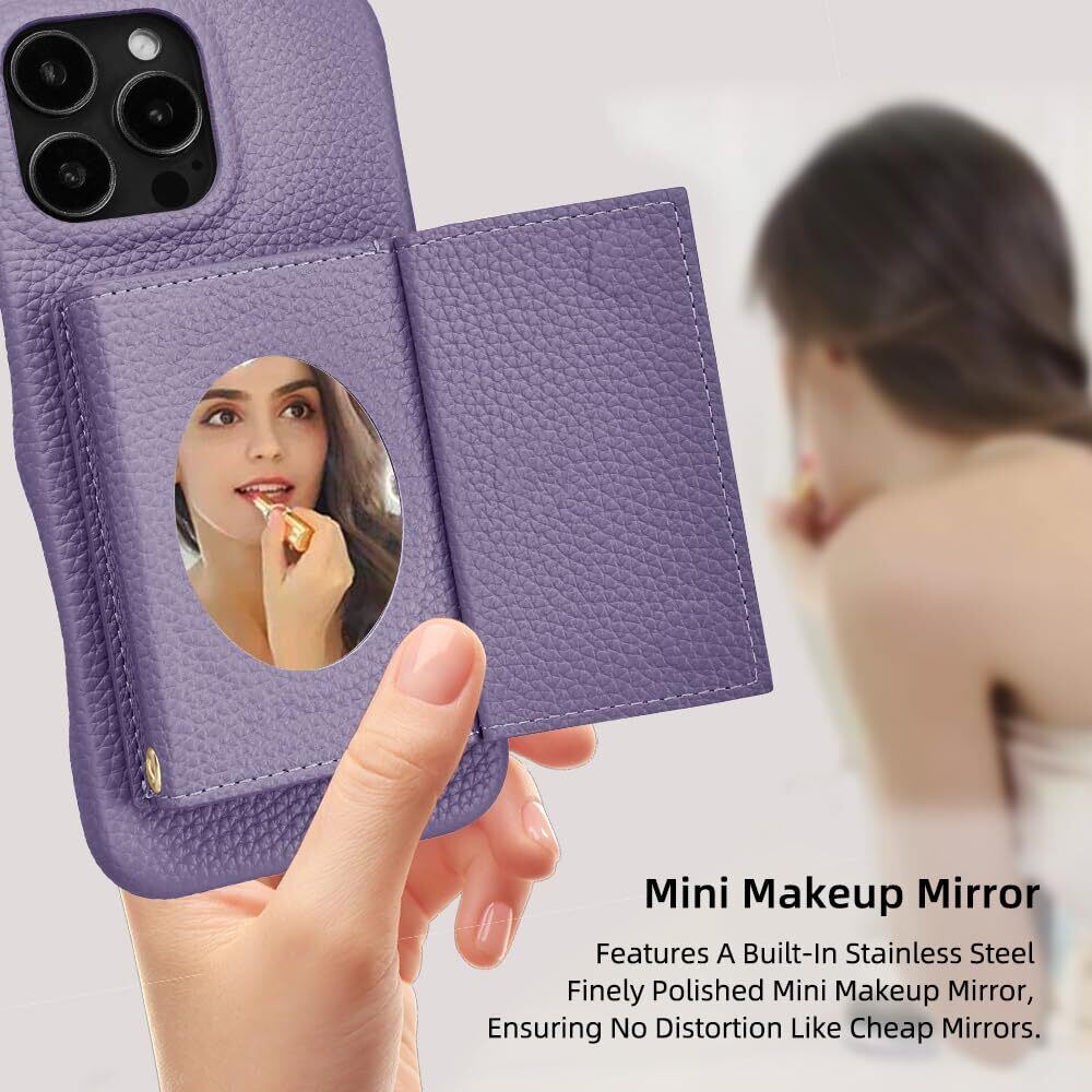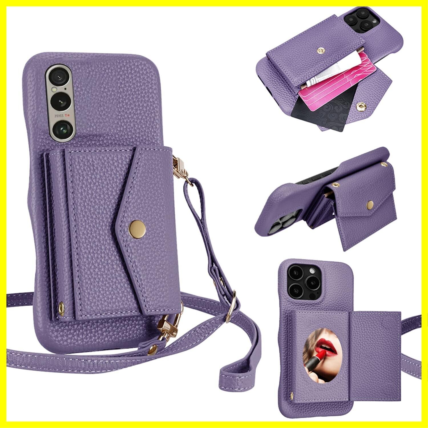 For Xperia 1 VI ケース 手帳型 背面 カード For エクスペリア1 vi Mark-6 SO-51E/SOG13 ショルダー ミニメイクミラー付き 背面カード収納 スタンド機能 PUレザー 横+縦 2掛け方 調整可能ショルダーベルト 耐衝撃 おしゃれ 財布型 パープル