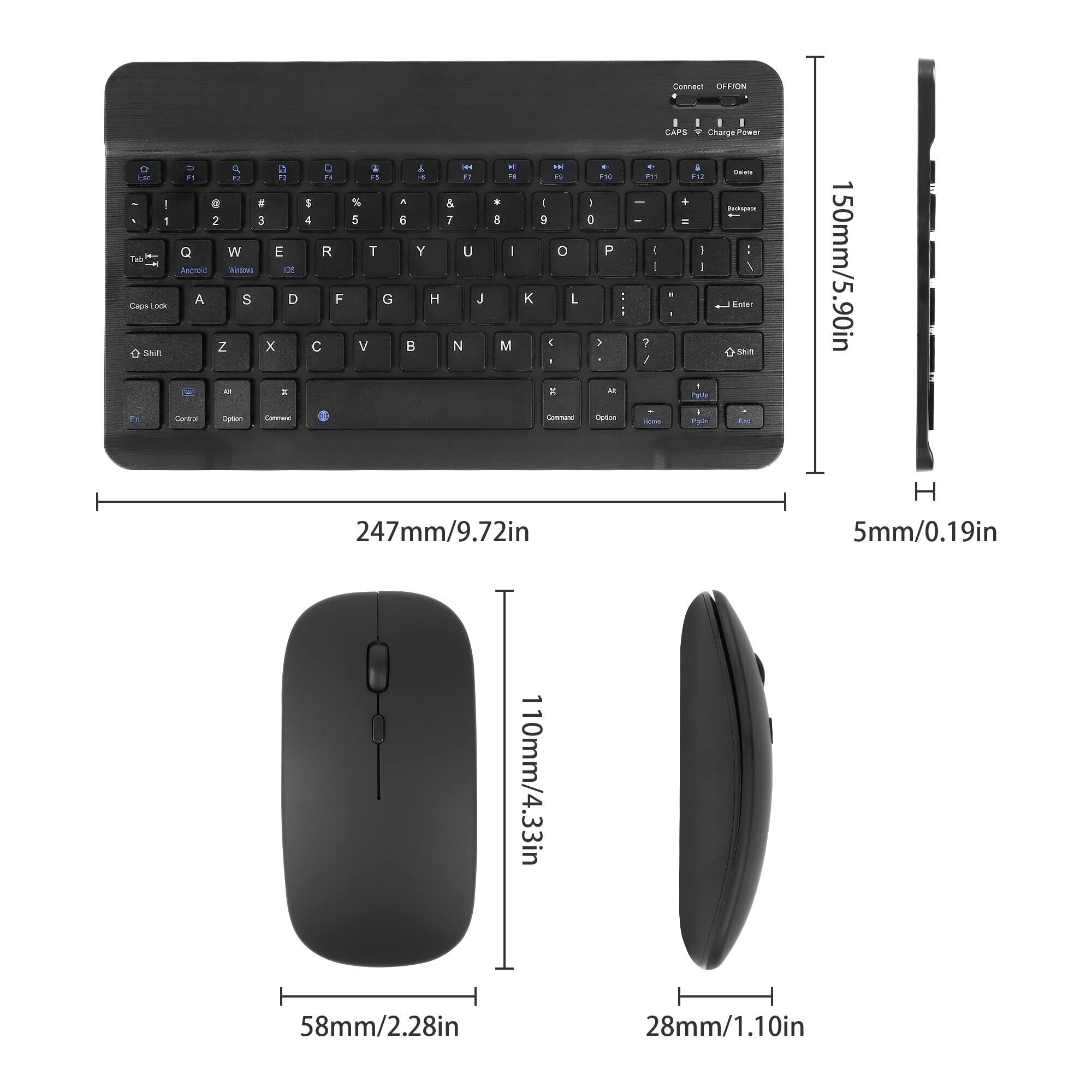 SUPER DREAM Bluetoothキーボードマウスセット ipad対応キーボード タブレット/スマホ用キーボード 10インチ ワイヤレスキーボード 充電式 可愛い コンパクト 薄型 軽量 携帯便利 Windows Mac iOS Android対応 長時間稼働 英語配列(黒)