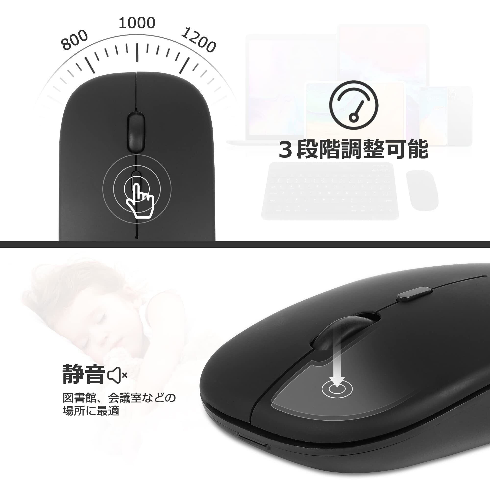 【USB充電式・3段階DPI調整】キーボードは充電式で、乾電池の交換は不要でかなり経済的です。一回目フル充電後、キーボードは最大150時間使われます。それにマウスは3段階DPI調整可能、高精度で800、1000、1200DPIまでに自由調整できます。使用しやすい!マウスは乾電池式(電池別売)。