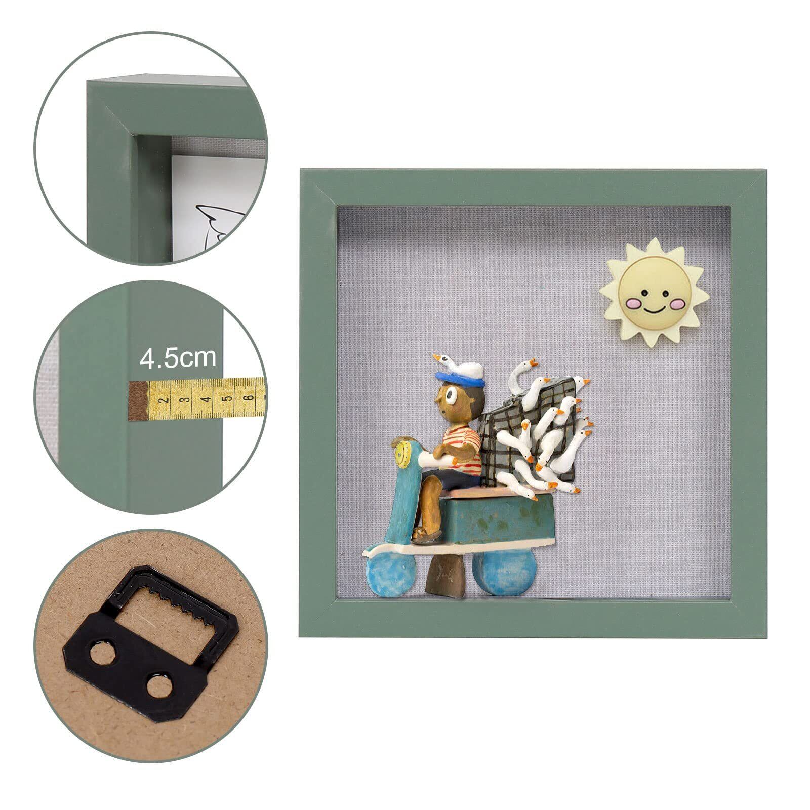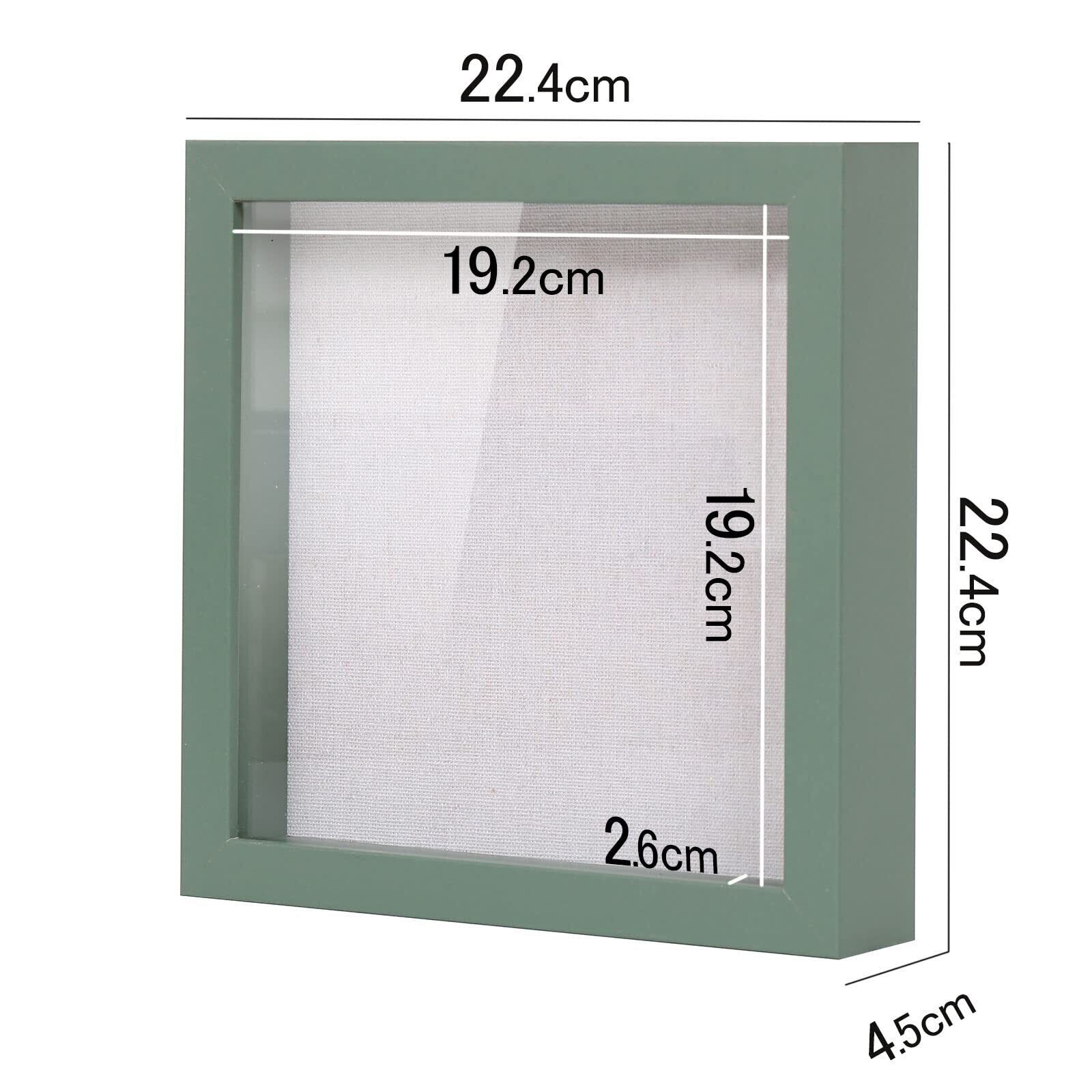 額縁 立体額 ボックスフレーム フォトフレーム 色紙 壁掛け 卓上 お祝い グリーン 「外径224 x224 x45 MM 内径192 x192 x25 MM」