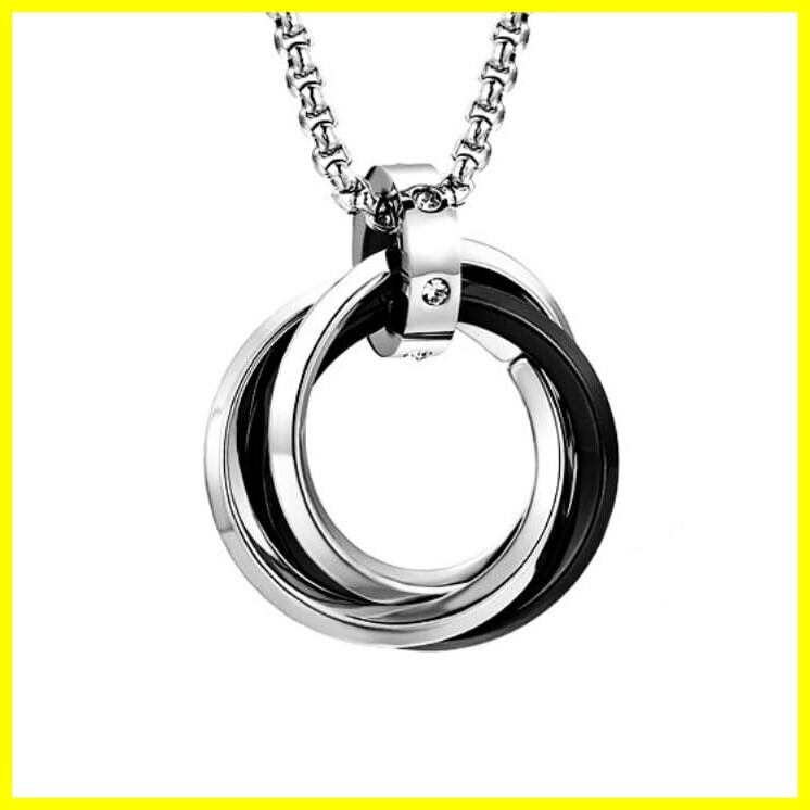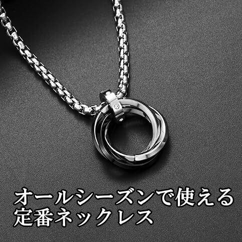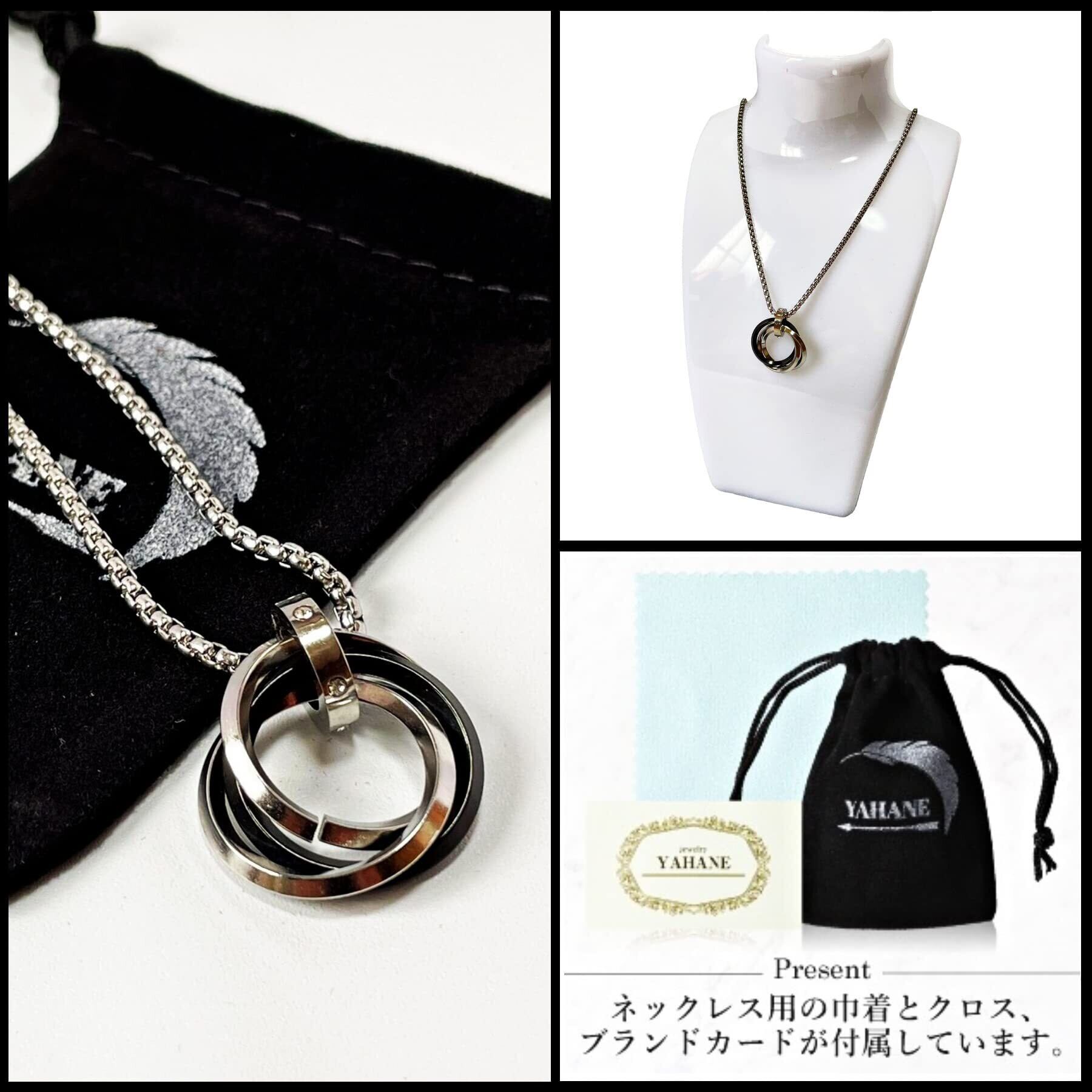[YAHANE] ネックレス メンズ ペンダント ダブルリング 3連リング シンプル ステンレス アクセサリー シルバー ブルー ブラック ゴールド トップ ジュエリー アレルギーフリー 防水