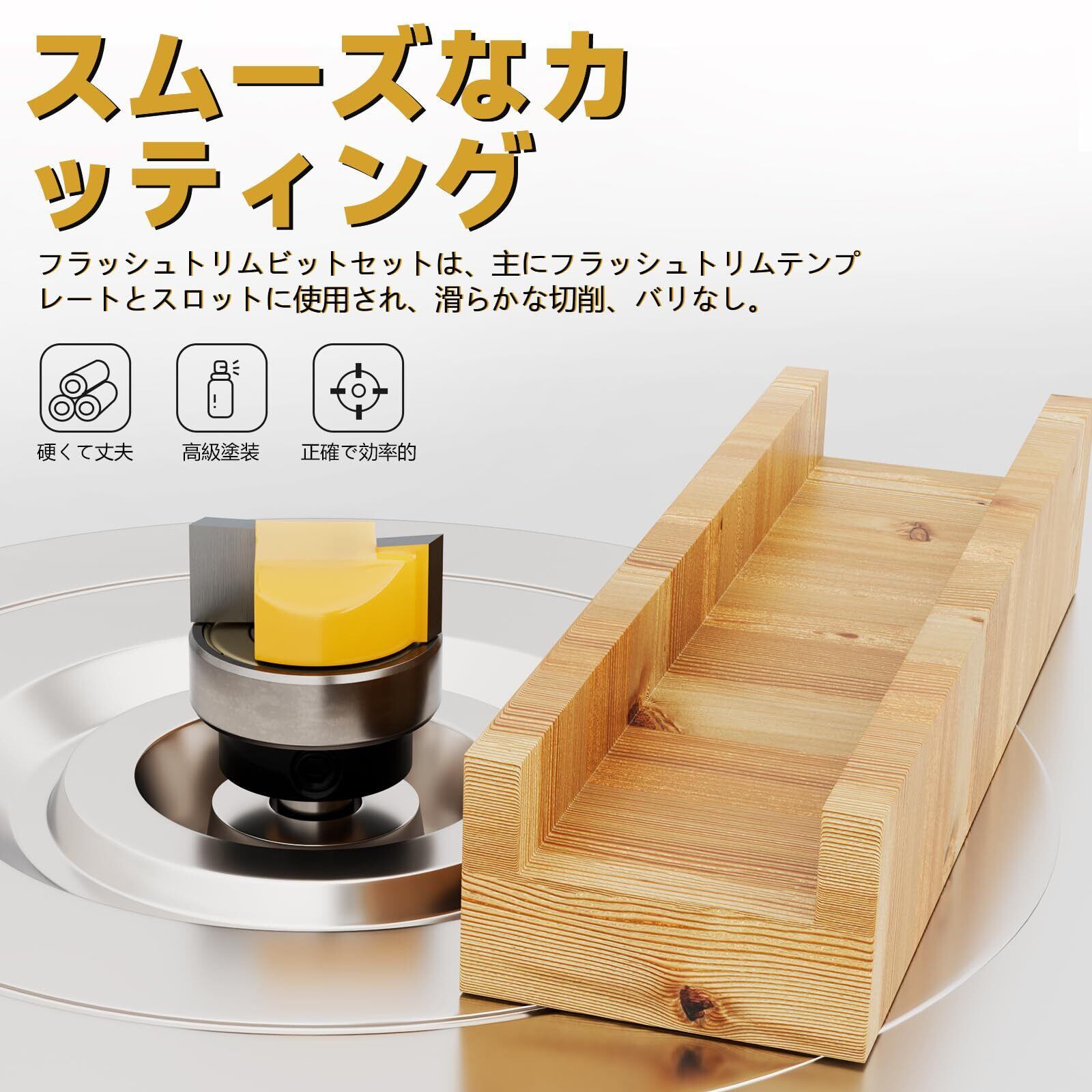 色: イエロー, ルータービットの刃部にYG6Xタングステン鋼合金を採用し, 切削力に優れ綺麗に仕上げられます, 最大の強度と耐久性を実現ことができます。
