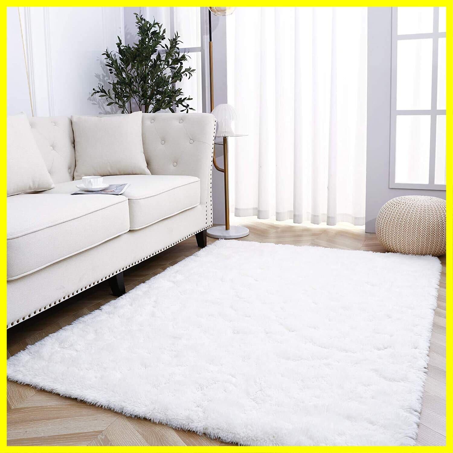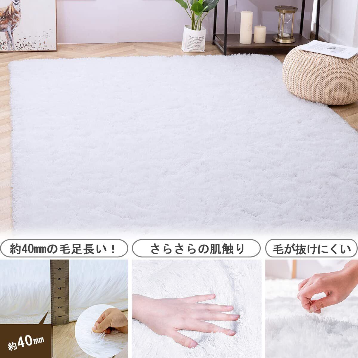 Leesentec カーペット ラグ ふわふわ 洗える ラグマット 北欧 滑り止め付き 防音 抗菌 防臭 毛長 冷房 床暖房対応 長方形 (120x160cm, ホワイト)
