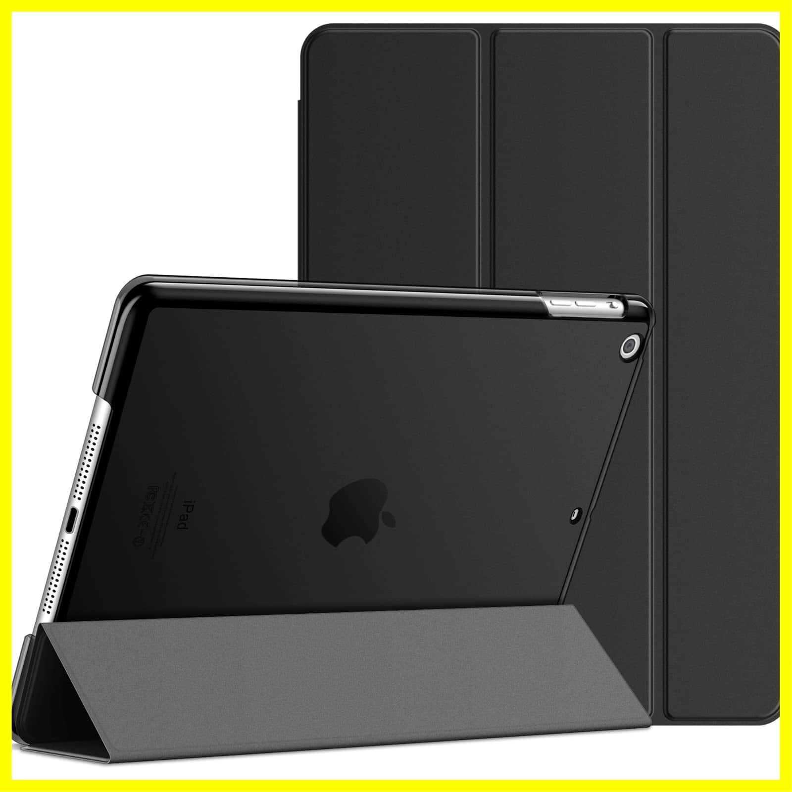 JEDirect iPad Air ケース (第1世代) レザー 三つ折スタンド オートスリープ機能 スマートカバー (ブラック)