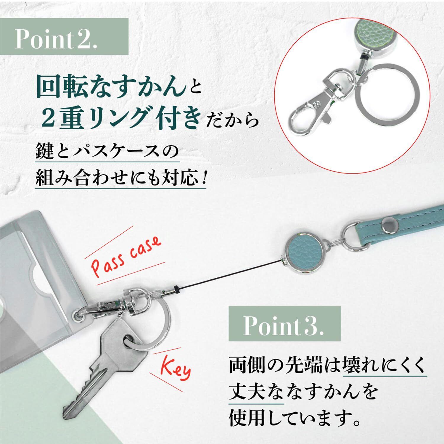 [Jb.eshing] リールキーホルダー リールストラップ【 本革 検査済】 リール付き ストラップ 伸びる ワイヤー レディース レザー パスケース