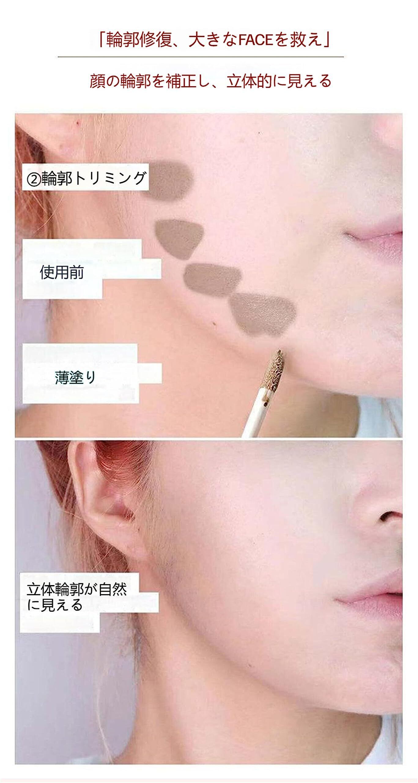 立体顔、小顔効果 マットな仕上がりで、ツヤ感を抑えることができます。立体感が強調し、メイク効果が長持ちします