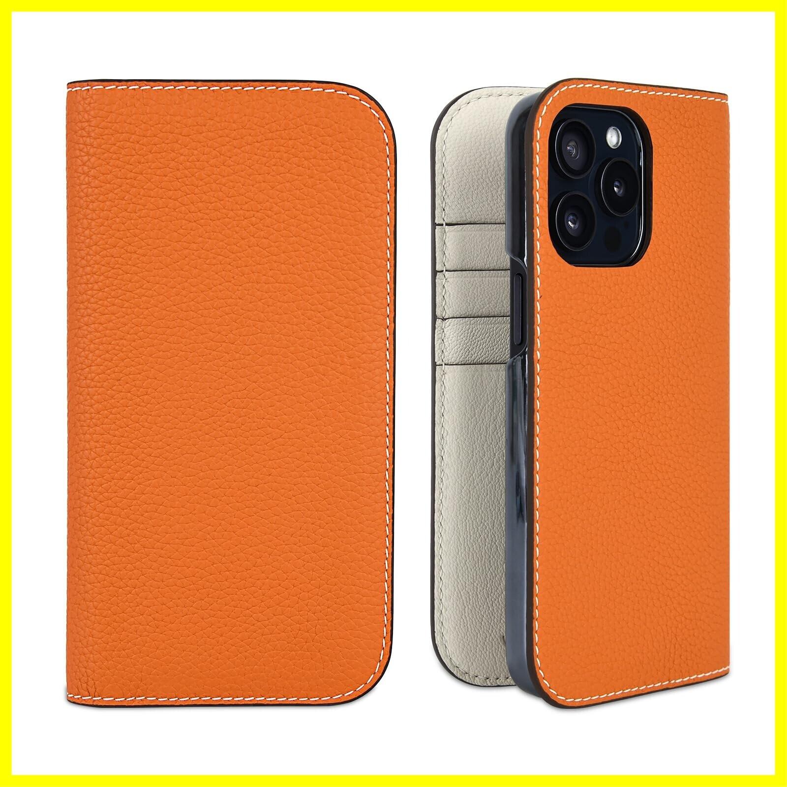 iPhone14対応 スマホケース 携帯ケース 手帳型 本革 ケース トゴレザー 携帯カバー スマートフォン カード収納 薄型 軽量 ギフト オレンジミルク, iPhone14ProMax用