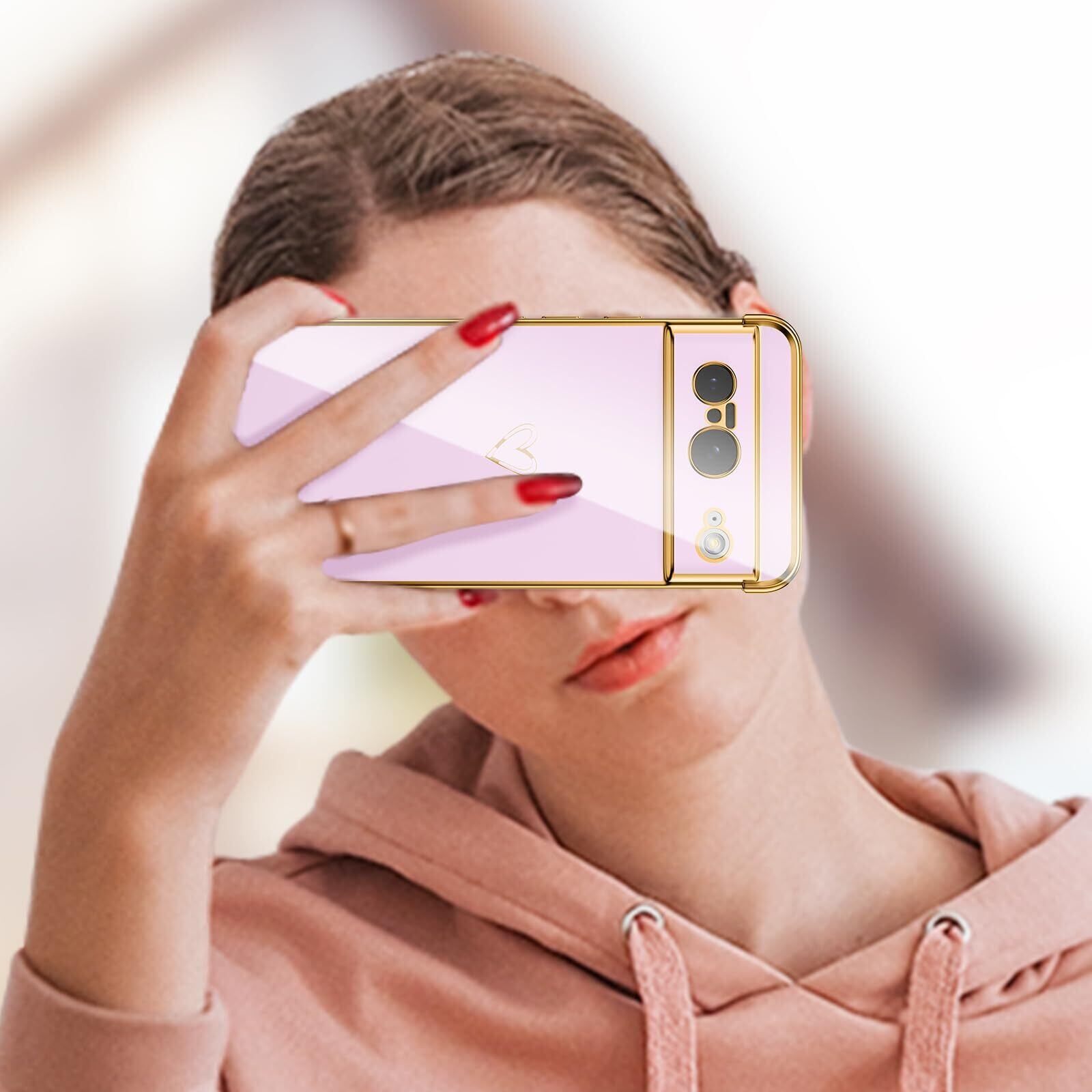 ZTOFERA Google Pixel 8 用 ハートケース おしゃれ 韓国 かわいい グーグル ピクセル 8 ケース 柔軟な TPU シリコン メッキ加工 ソフト 軽量 耐衝撃 携帯カバー 女性 心パターン Pixel 8 スマホケース ワイヤレス充電対応 (パープル)
