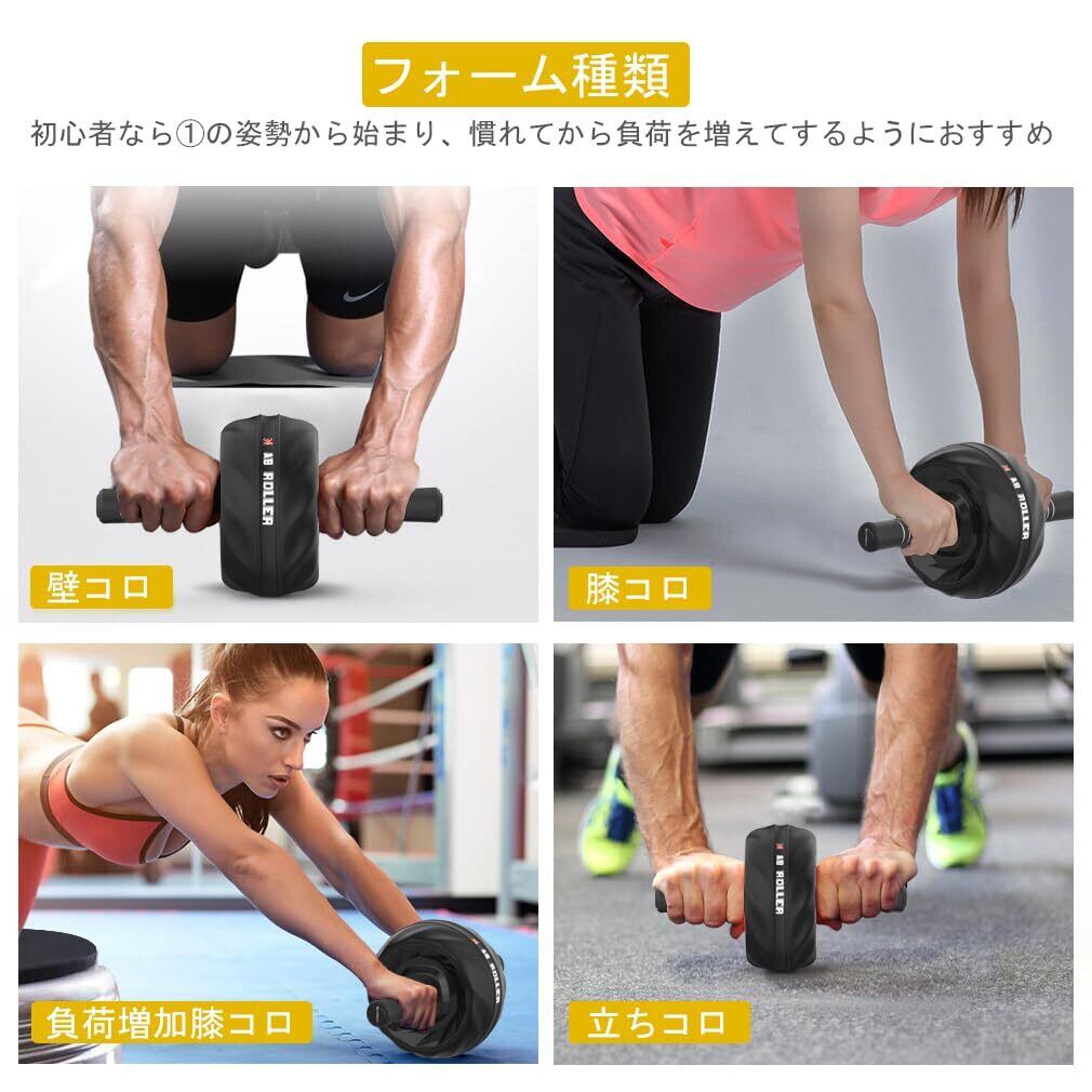 AUOPLUS 腹筋ローラー 膝マット付き アブホイール 腹筋 トレーニング器具 筋トレグッズ エクササイズローラー 体幹 ストレッチ ダイエット器具 アブローラー