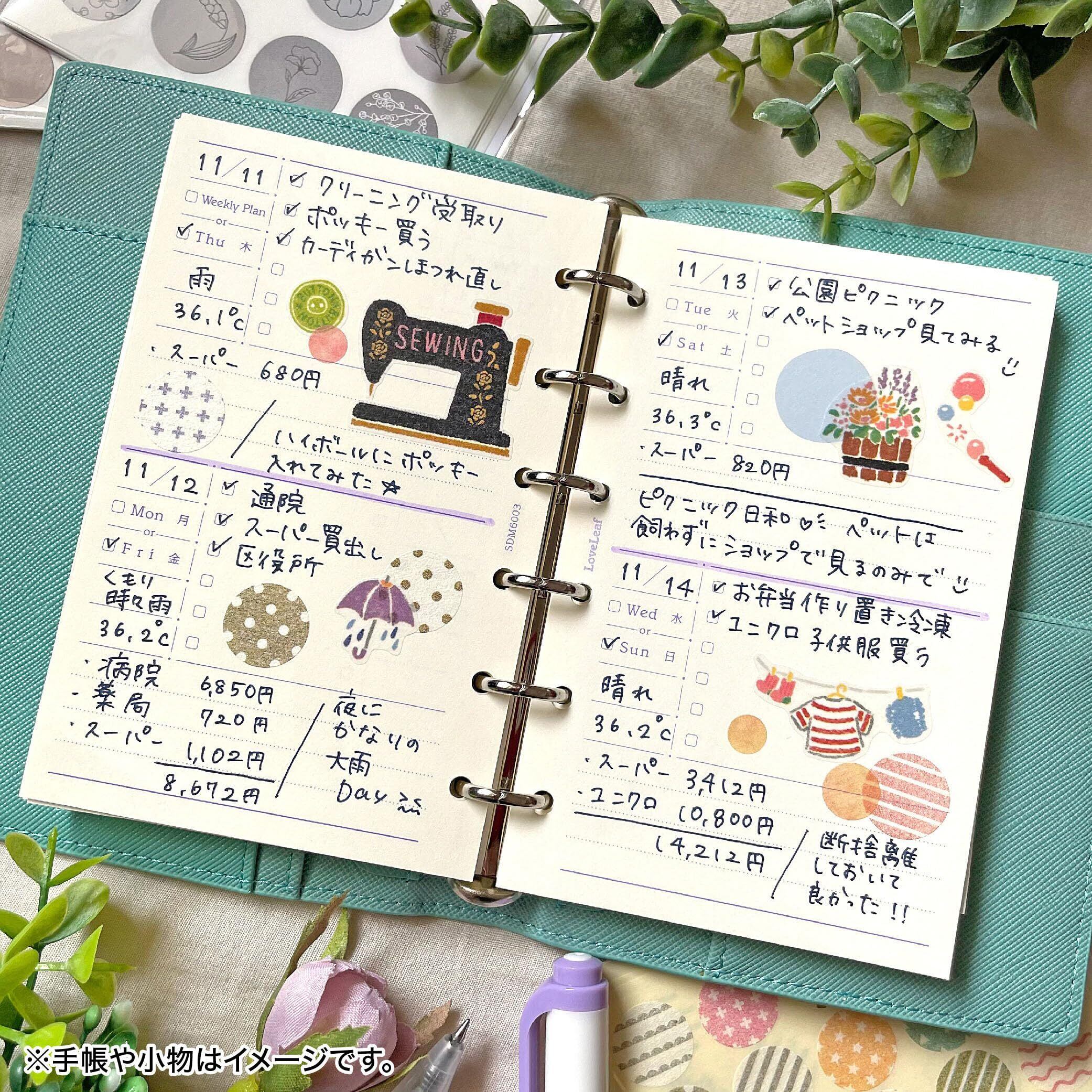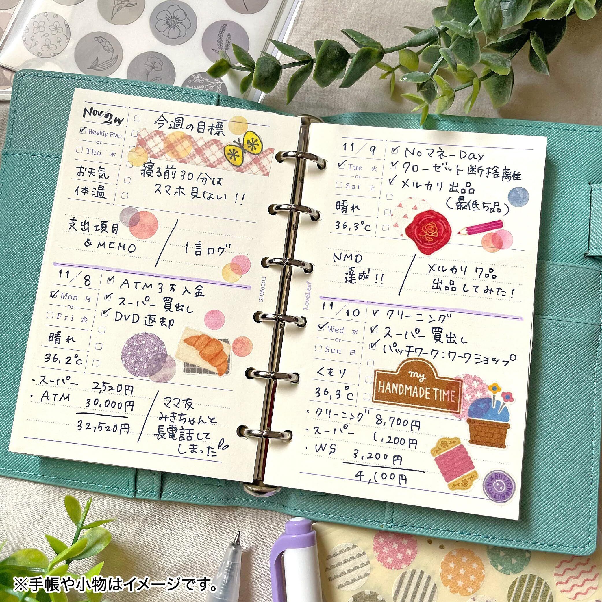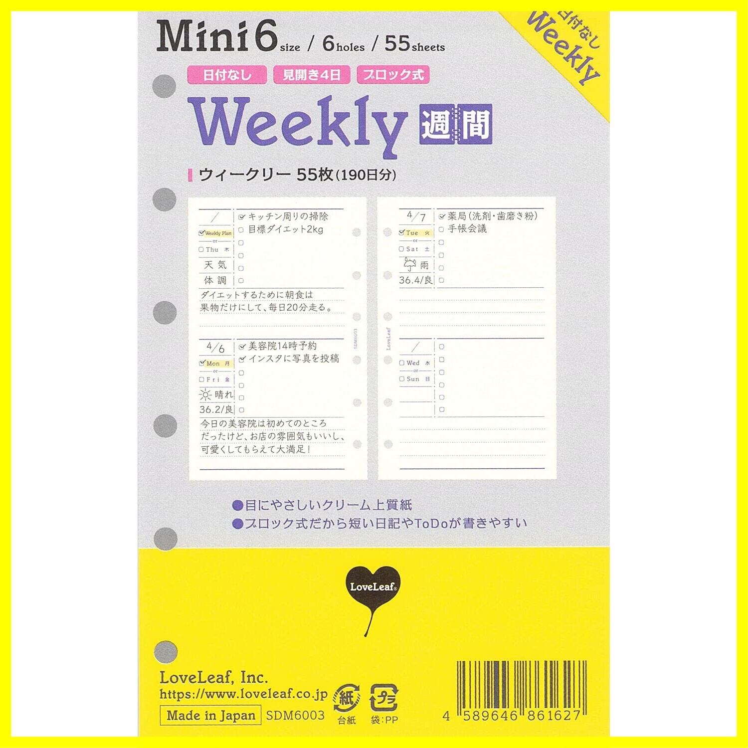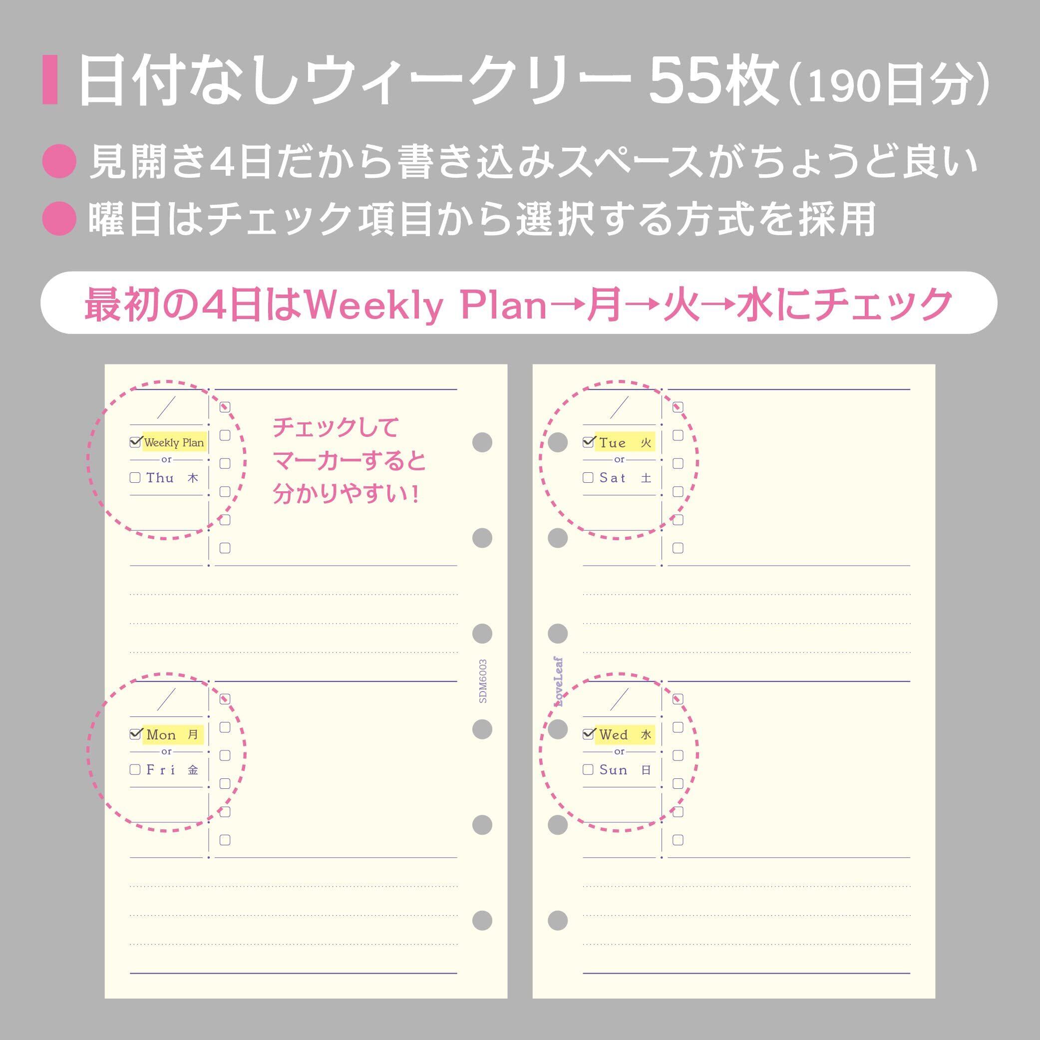 ラブリーフ システム手帳 リフィル ミニ6穴 ウィークリー 日付なし 見開き4日 週間ブロック式 55枚(190日分) 6穴 SDM6003