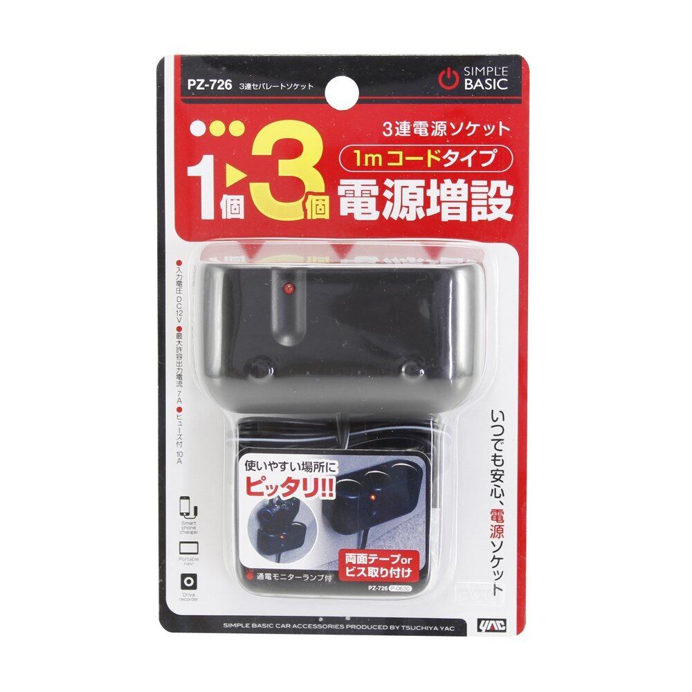 カラー:ブラック DC12V専用 3連コード付きソケット コード長:約1m