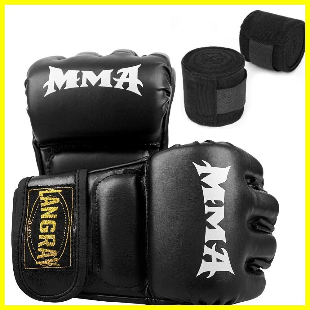 LangRay オープンフィンガー グローブ ボクシンググローブ 手袋 MMA 総合格闘技 ボクシング ムエタイ 空手 テコンドーなど トレーリング用 メ ンズ レディース