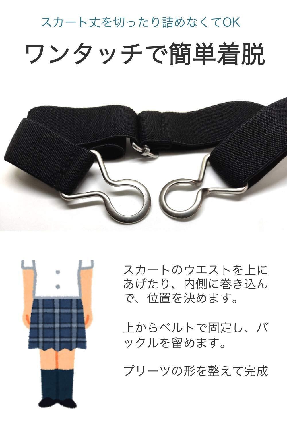[wumio] スカートベルト 黒 無地 スカート丈 調節 ゴムベルト だるまベルト 学生 制服 スカート スクール ずり落ち 金具留め バックル 裾上げ 裾詰め