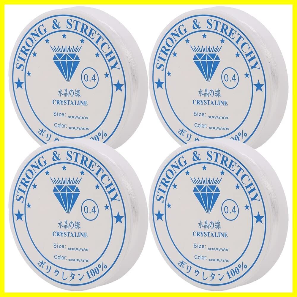 シリコンゴム 4巻セット 太さ0.4mm ブレスレット用 ゴム紐 弾力紐 水晶の線 伸びる糸 クリア色 DIY 手芸 手作り アクセサリー (0.4mm)